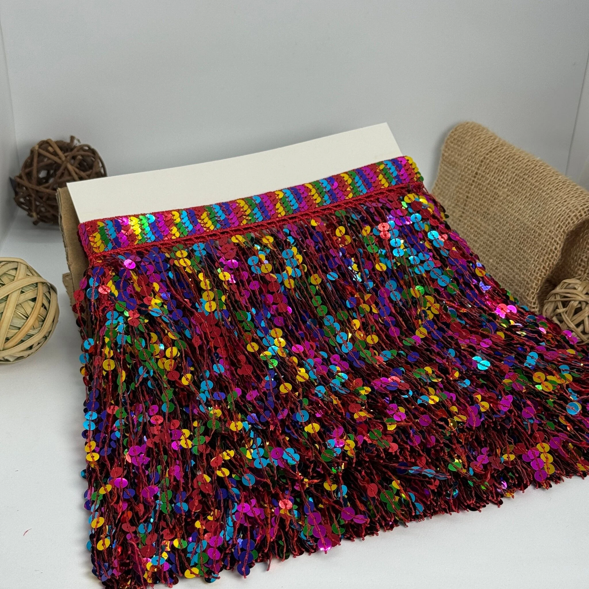 Бахрома танцювальна з паєтками 16 см (10 ярдів/9,14 м.), 11 кольоровий червоний