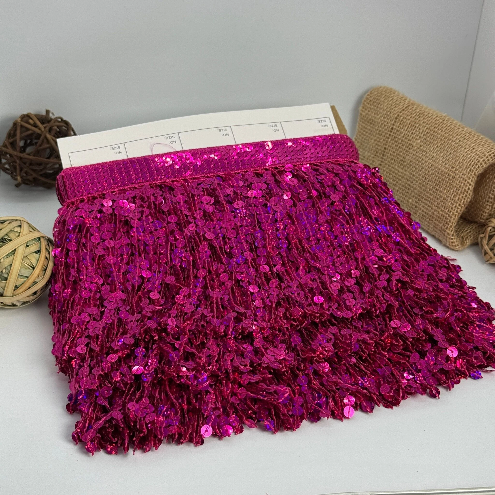 Бахрома танцювальна з паєтками 16 см (10 ярдів/9,14 м.), 2 малиновий