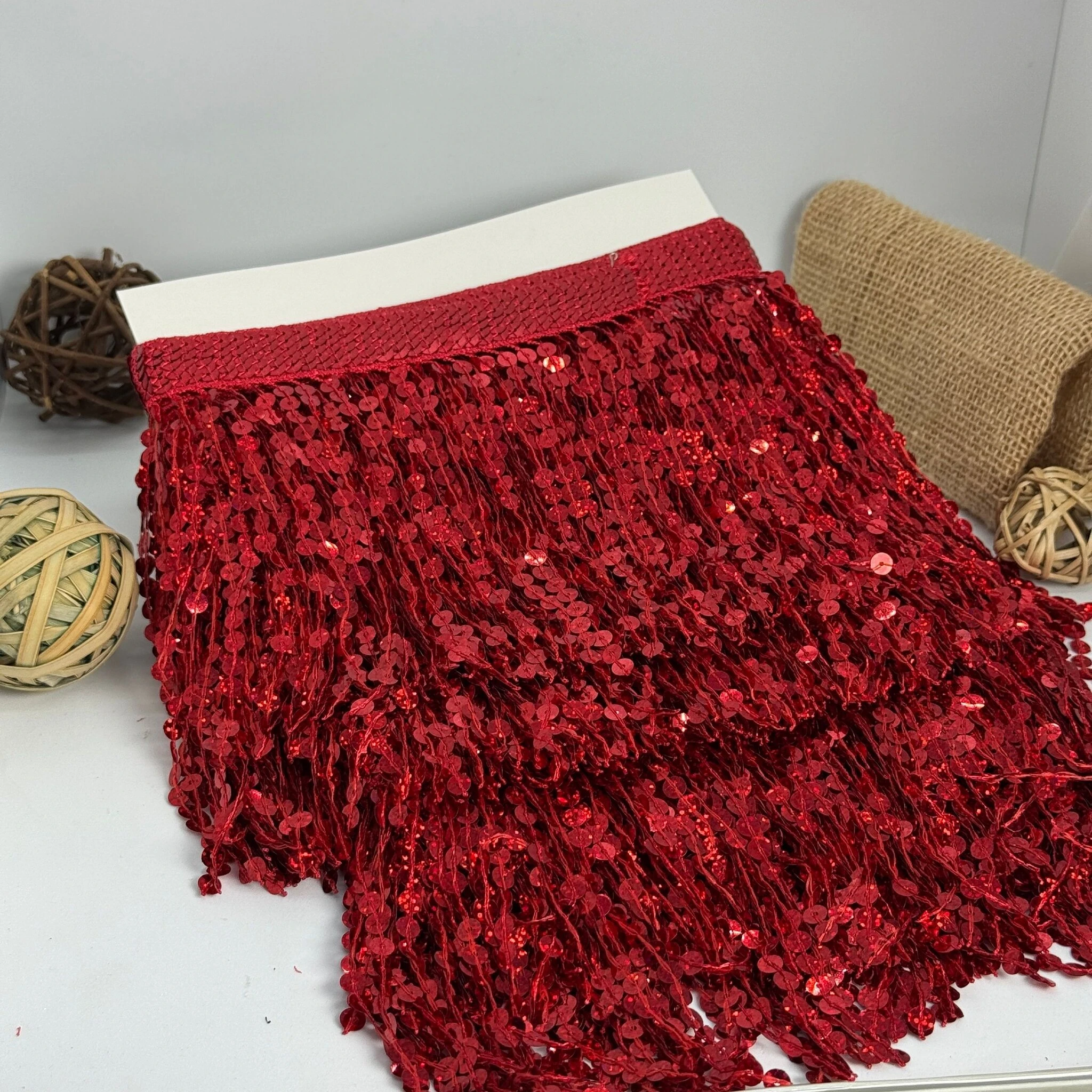 Бахрома танцювальна з паєтками 16 см (10 ярдів/9,14 м.), 4 червоний