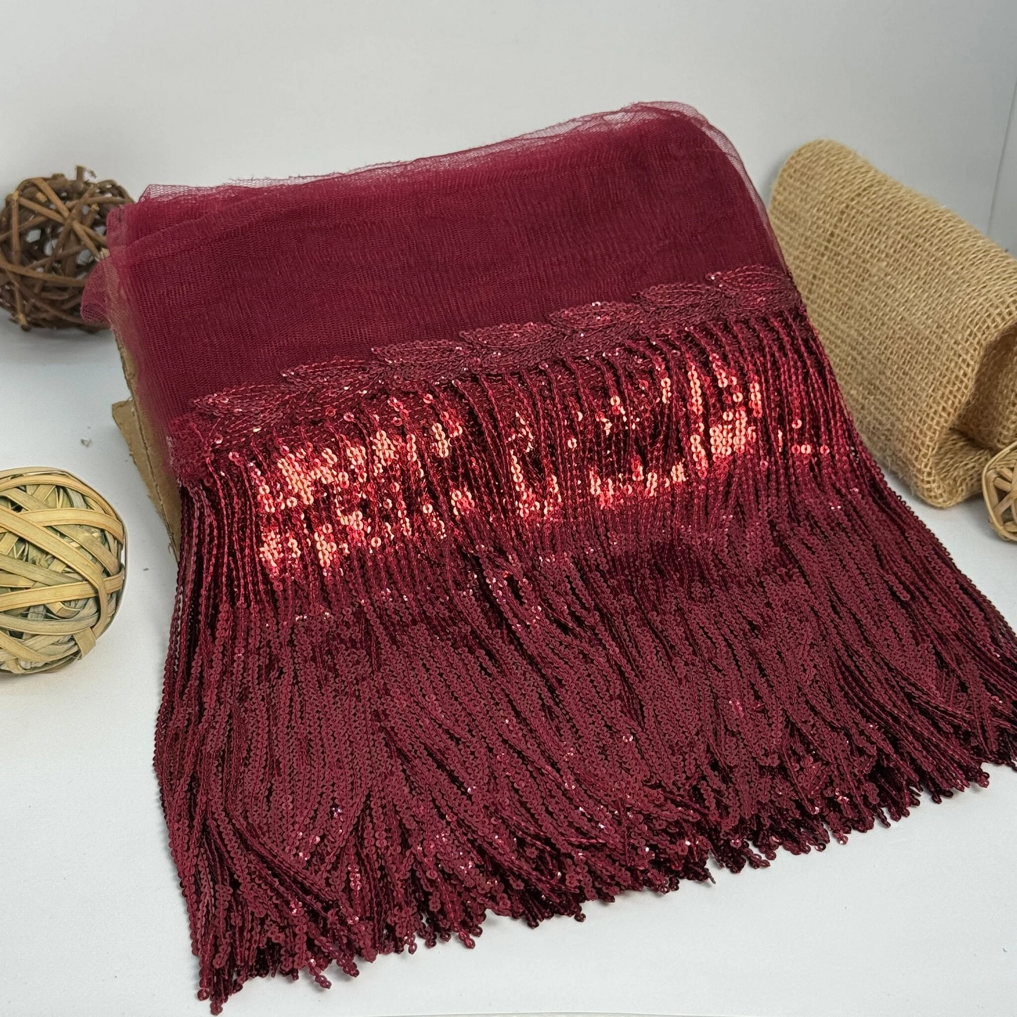 Бахрома танцювальна з паєткою 20 см (10 ярдів/9,14 м.), 10 бордовий