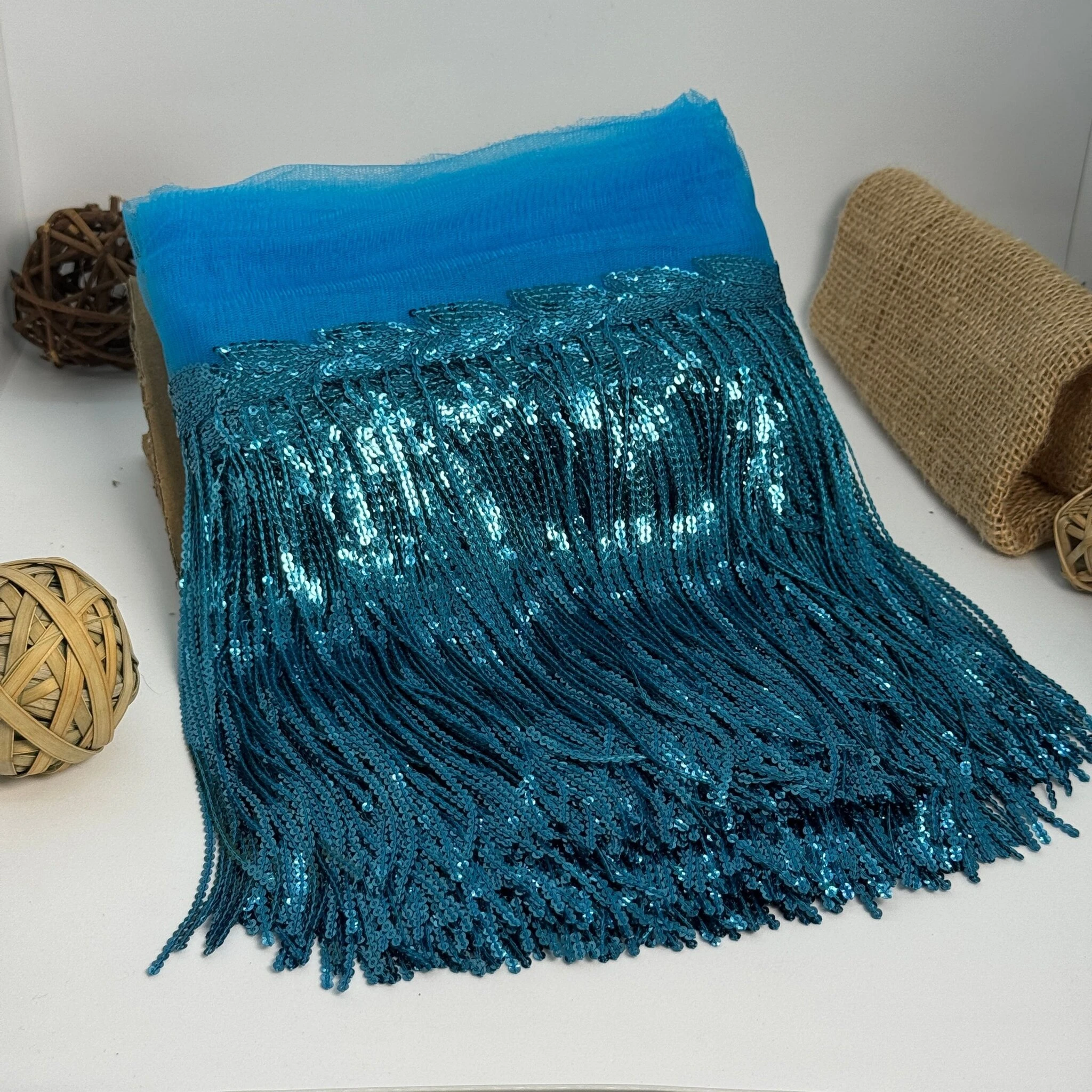 Бахрома танцювальна з паєткою 20 см (10 ярдів/9,14 м.), 14 світлий блакитний