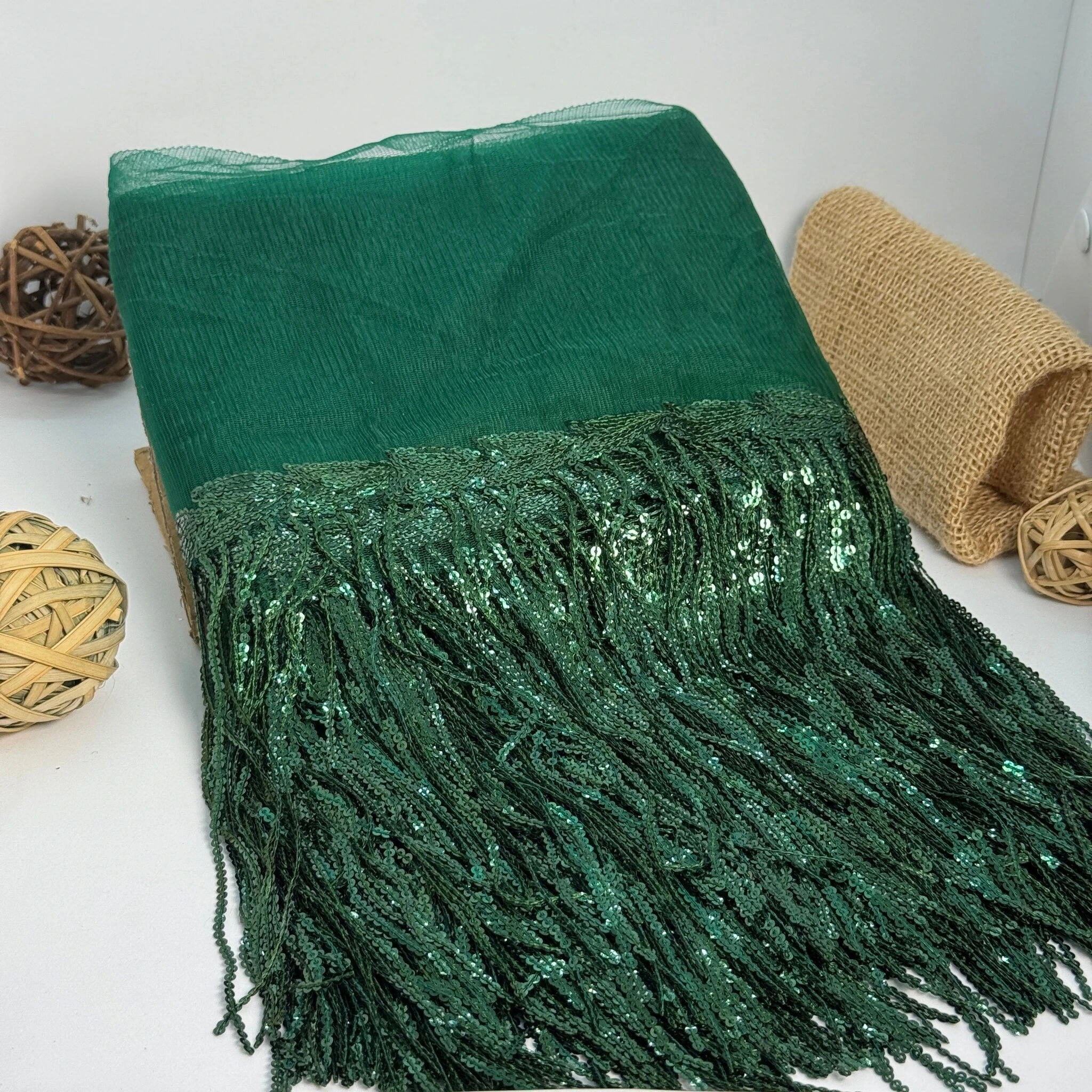 Бахрома танцювальна з паєткою 20 см (10 ярдів/9,14 м.), 21 смарагдовий