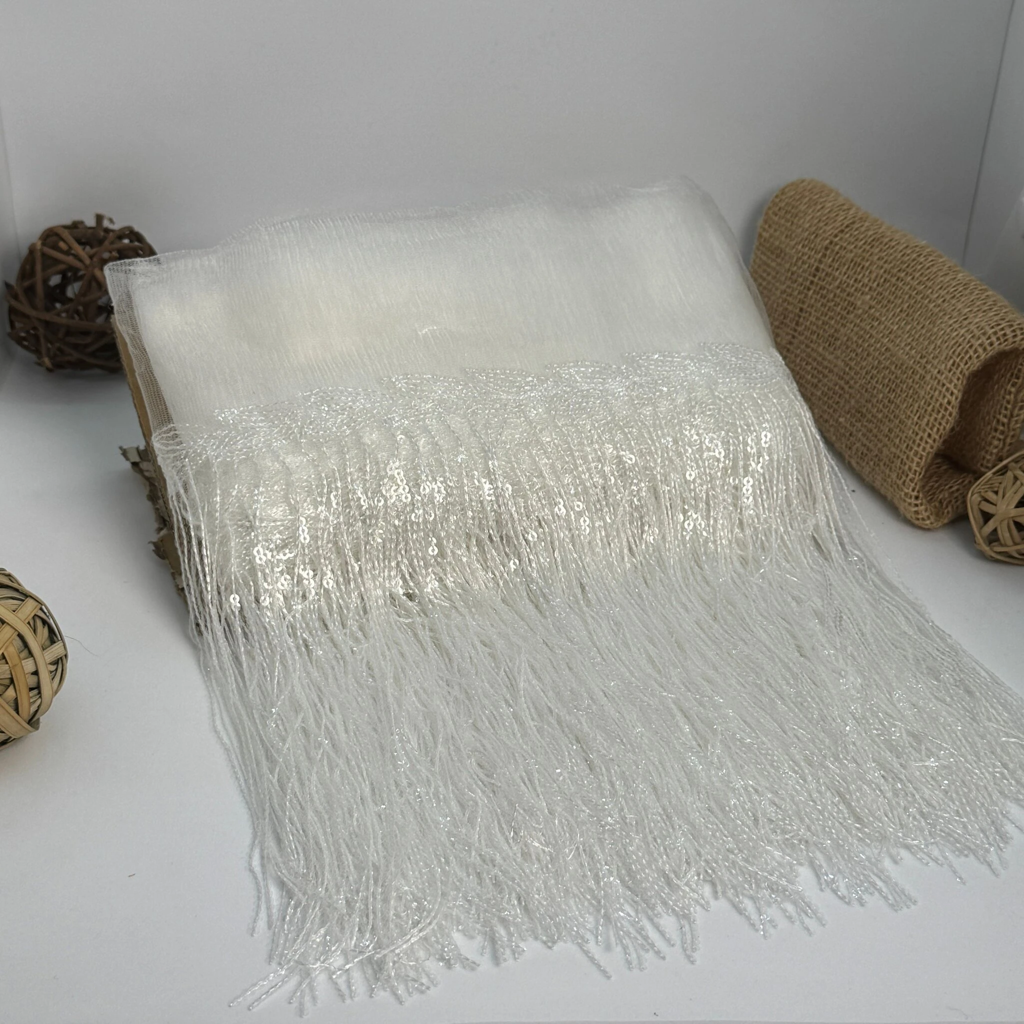 Бахрома танцювальна з паєткою 20 см (10 ярдів/9,14 м.), 23 білий прозорий
