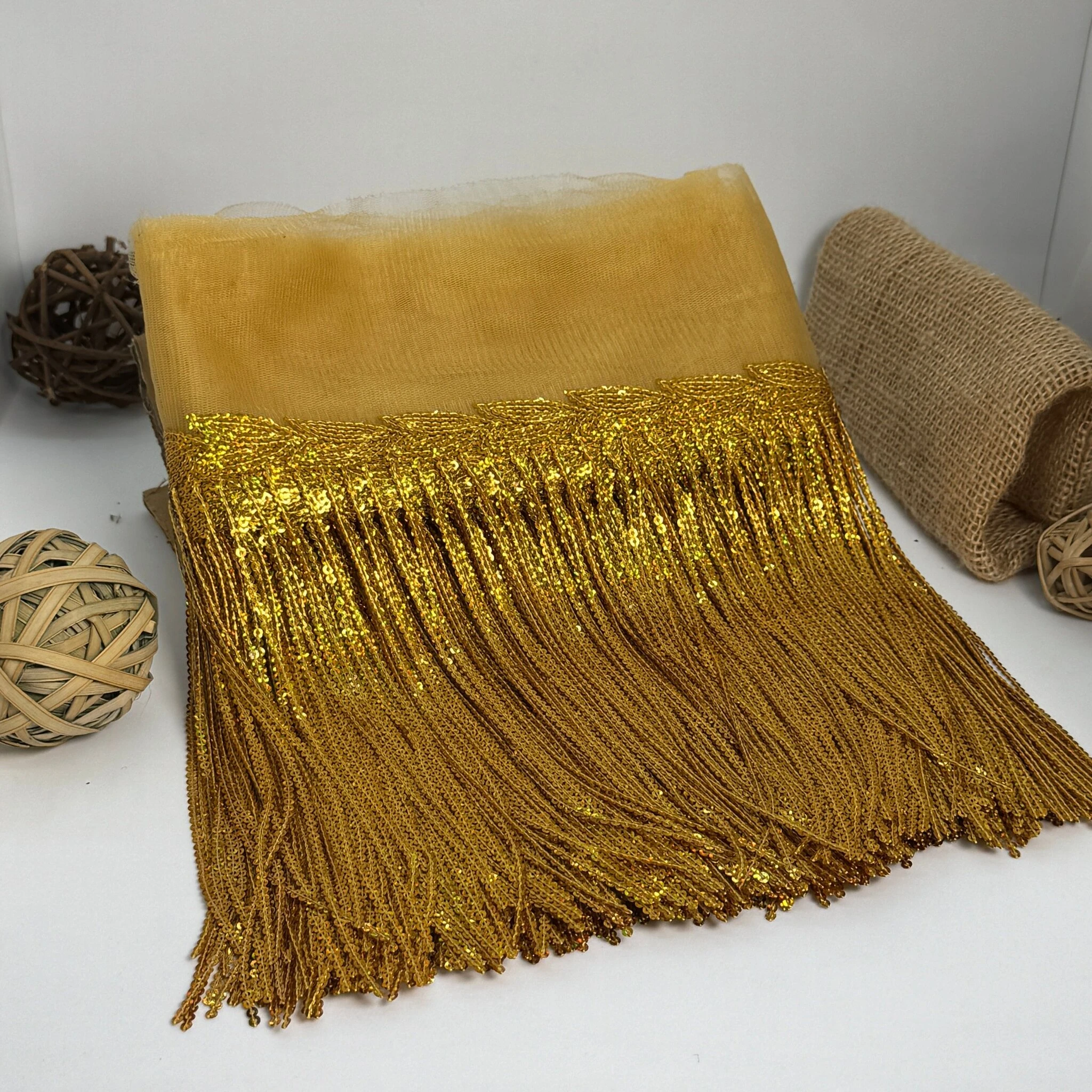 Бахрома танцювальна з паєткою 20 см (10 ярдів/9,14 м.), 28 темний золотий