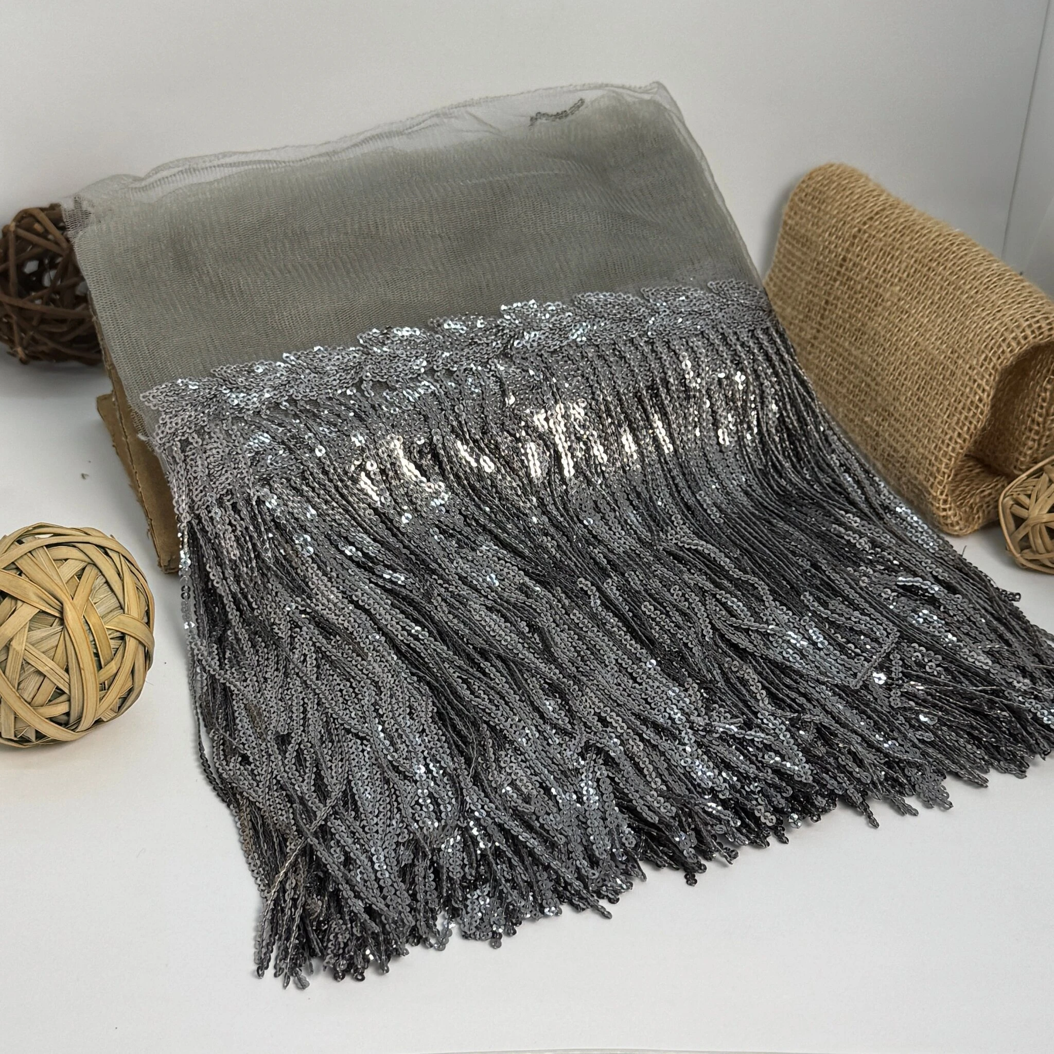 Бахрома танцювальна з паєткою 20 см (10 ярдів/9,14 м.), 3 сірий