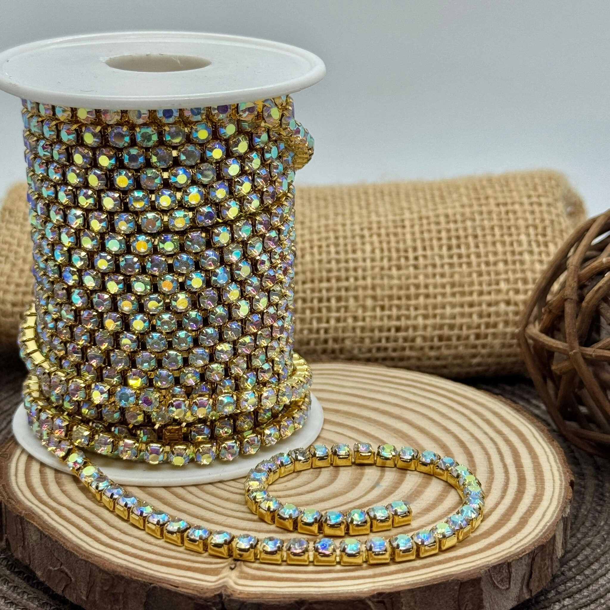 Цепи з каменями – декоративні елементи, що поєднують металеву основу та вбудовані камінці для яскравого блиску і ефектного вигляду. Вони легко прикріплюються до одягу, аксесуарів або виробів для створення стильного та розкішного декору.
