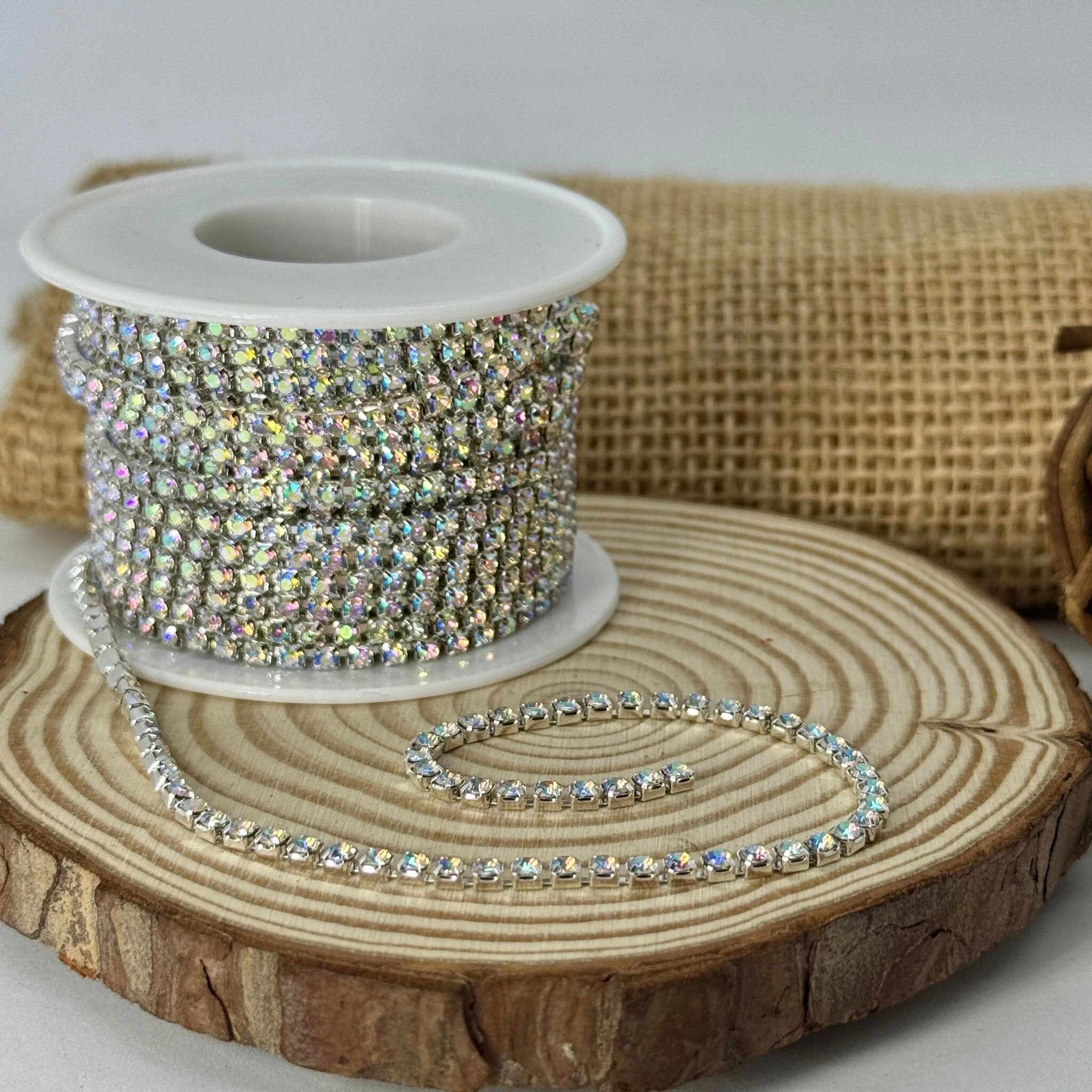Цепи з каміням – декоративні елементи, що поєднують металеву основу та вбудовані камінці для яскравого блиску і ефектного вигляду. Вони легко прикріплюються до одягу, аксесуарів або виробів для створення стильного та розкішного декору.