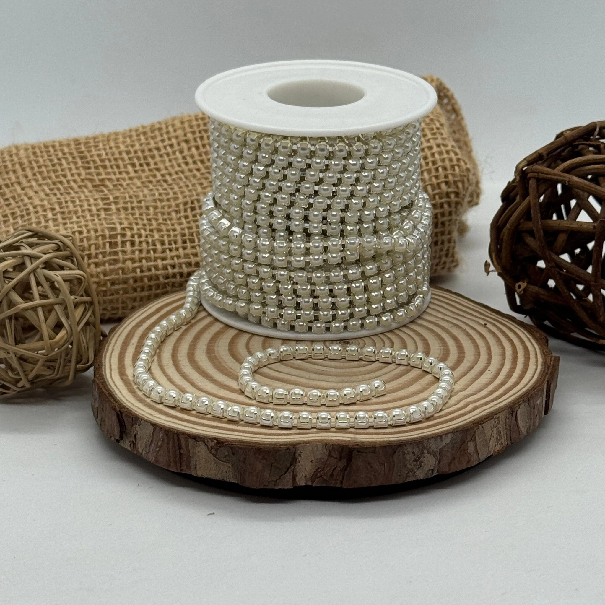 Цепі з каменями SS16 (4 мм) перлина – декоративні металеві ланцюжки з вбудованими перлинними камінцями діаметром 4 мм, які створюють елегантний і блискучий ефект. Вони ідеально підходять для прикрашання одягу, аксесуарів та декоративних виробів, додаючи виробам витонченості та святкового вигляду.