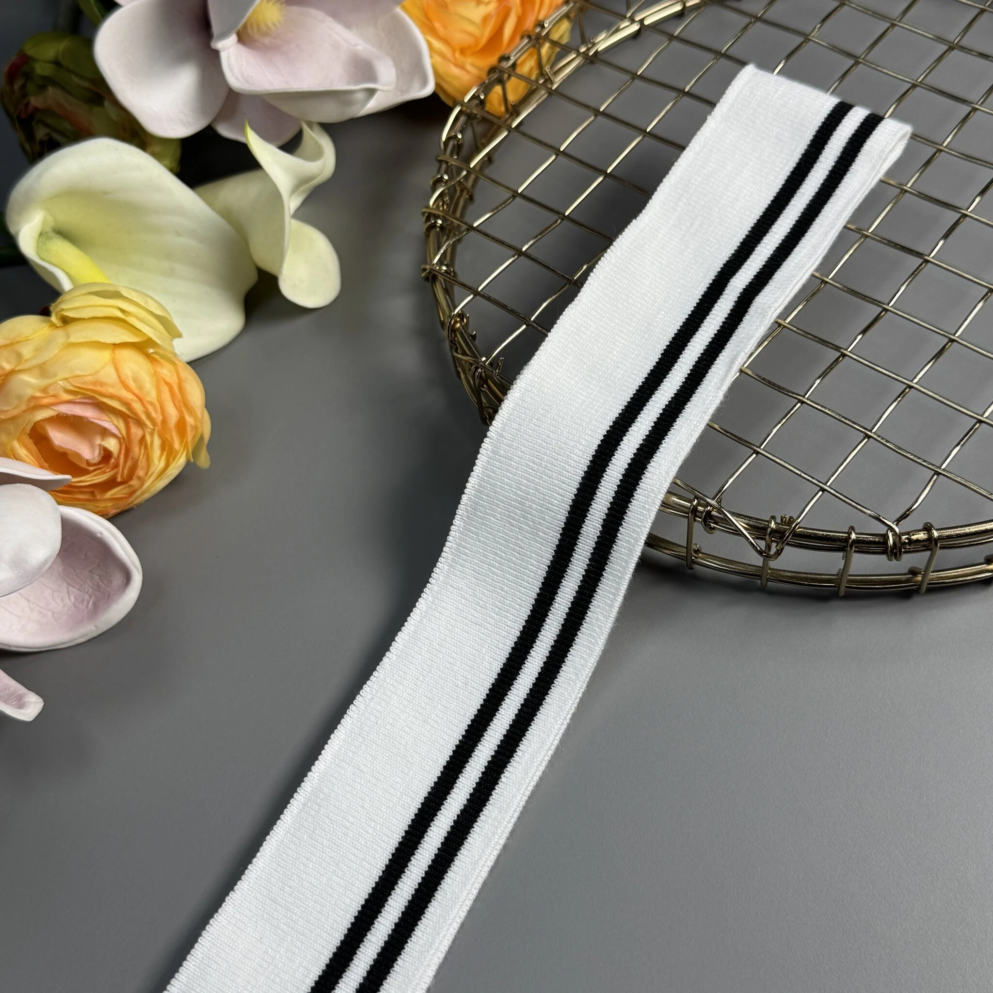 Довяз трикотажний бавовняний (4 см*120 см), білий+чорний