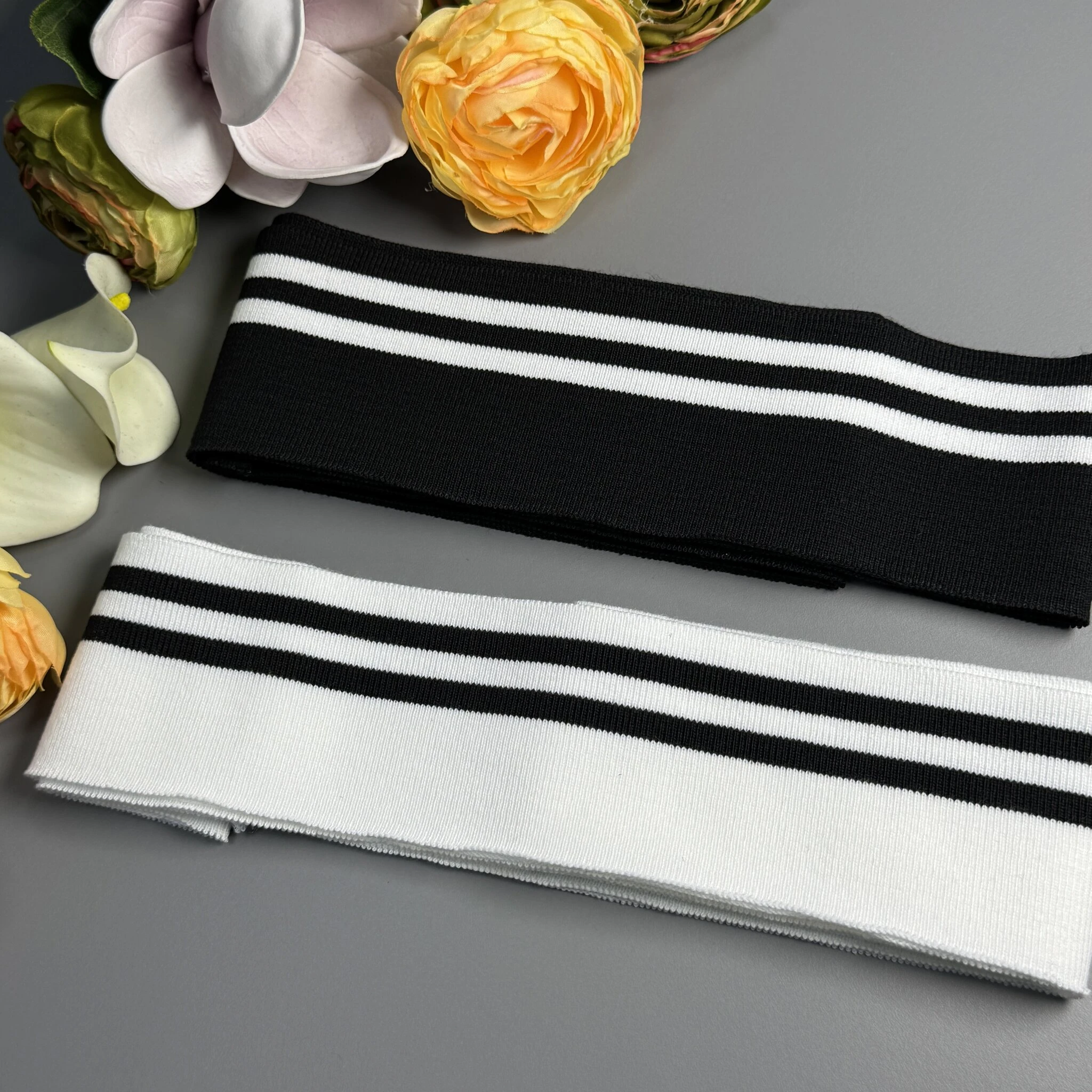 Довяз трикотажний бавовняний (6.5 см*120 см), чорний+білий