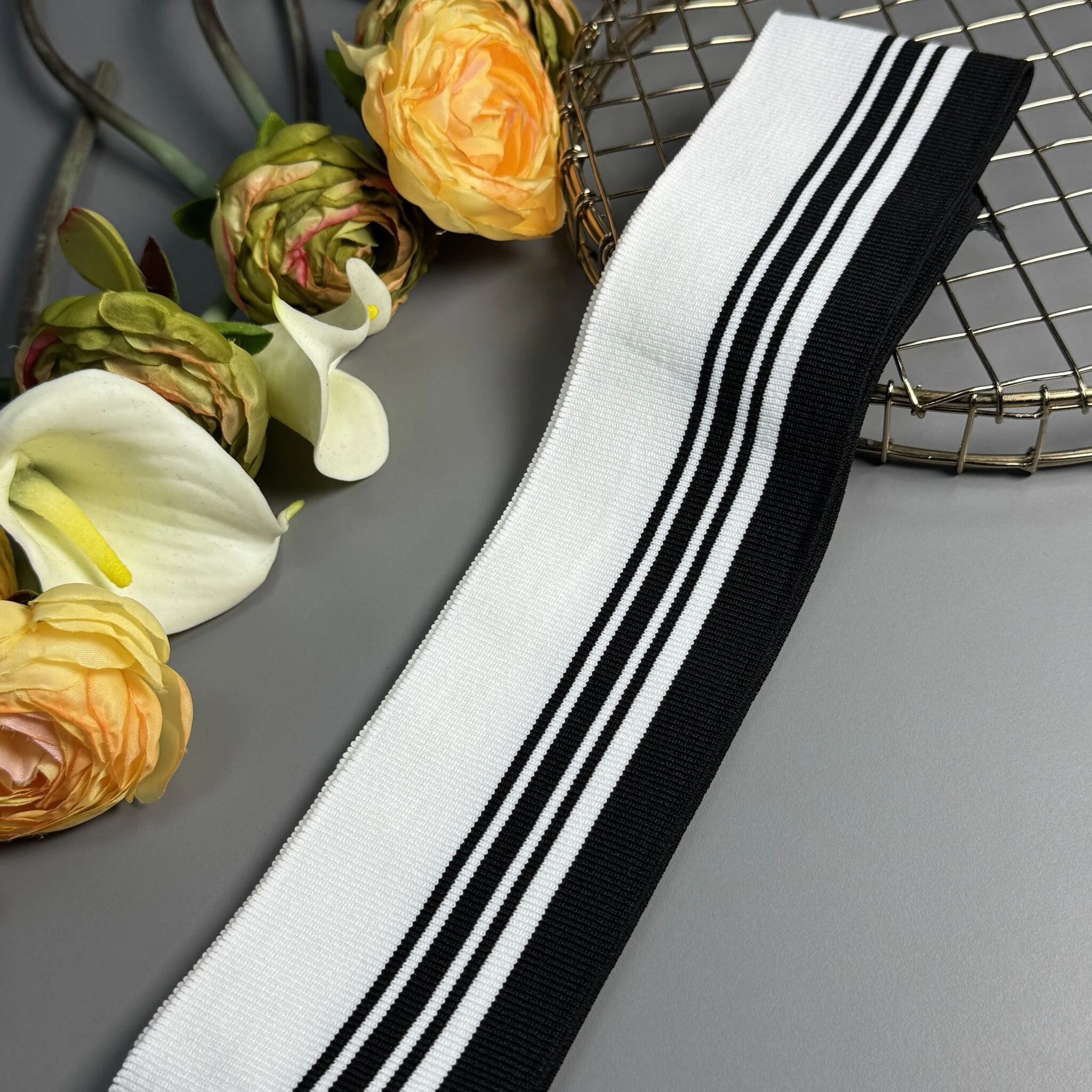 Довяз трикотажний поліестровий (6.5 см*120 см), білий+чорний полоси
