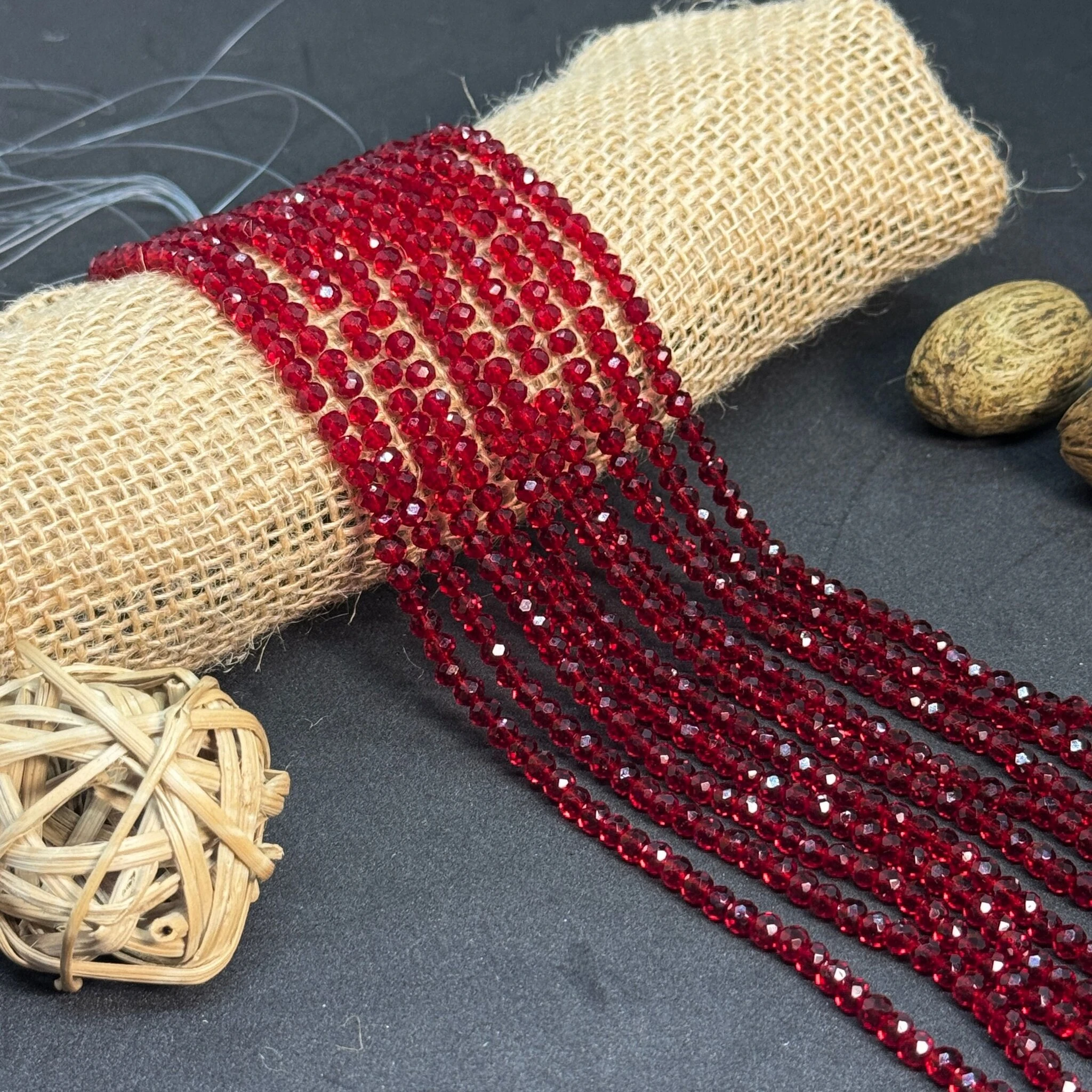 Хрусталь на нитці 4 мм (10*113 шт.), М017 темний червоний