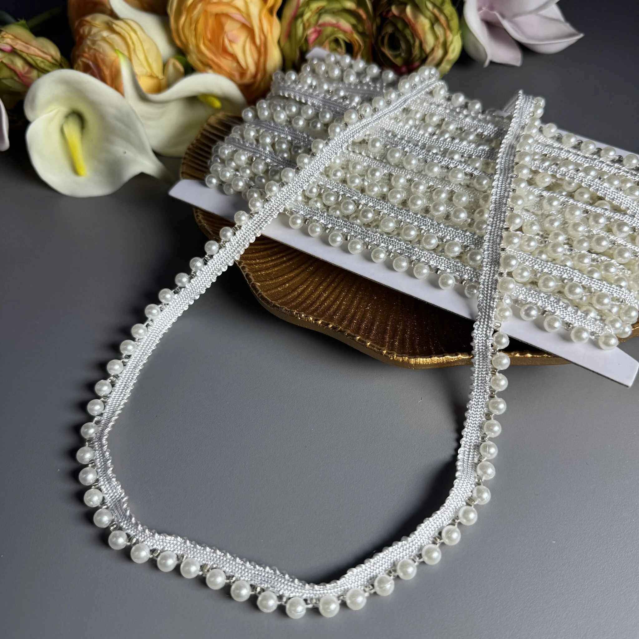 ✨ Кант з перлинами білий (10 ярд / 9,1 м) — вишукана деталь для створення стильних та святкових виробів.