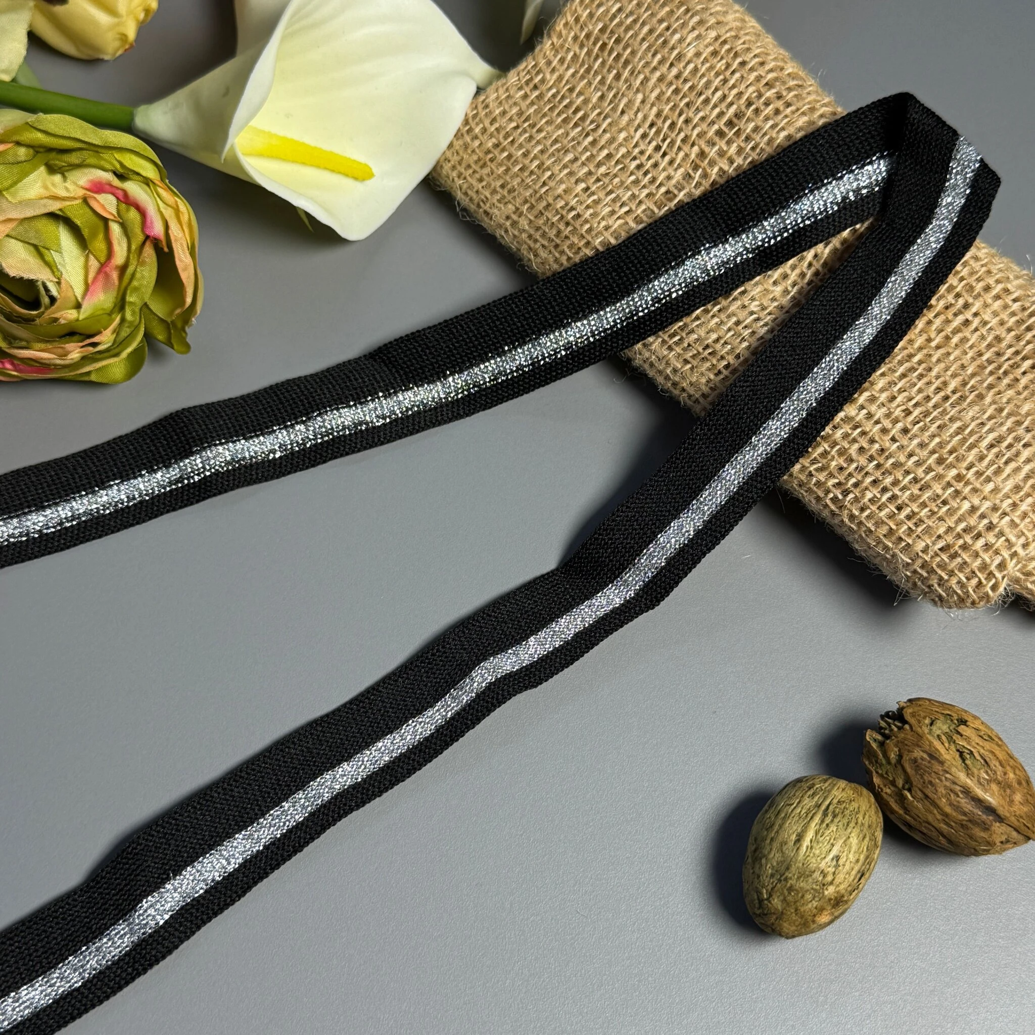 Лампас трикотажний 2 см (50 м), чорний+срібло