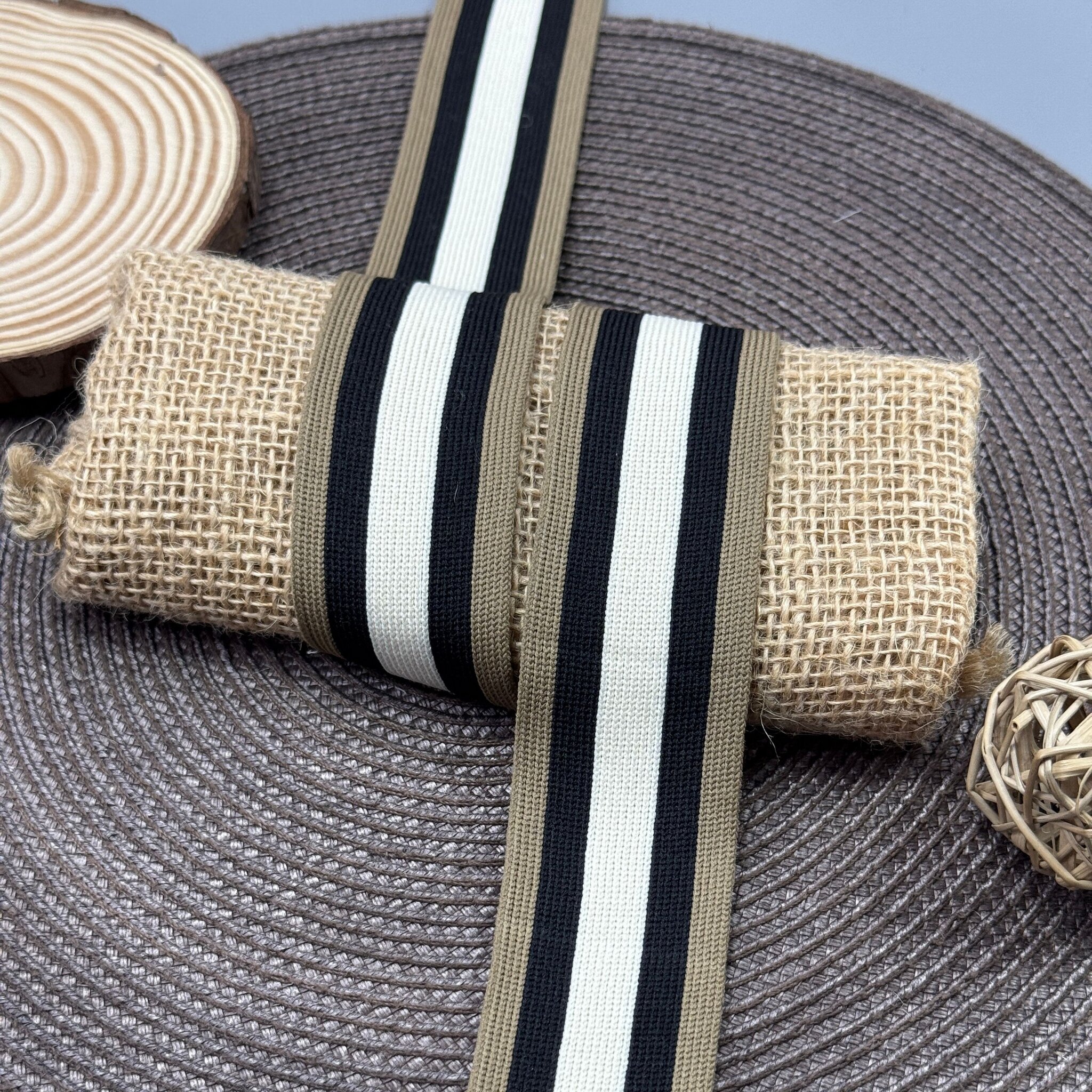 Лампас трикотажний 4 см (40 м), бежевий+чорний+білий