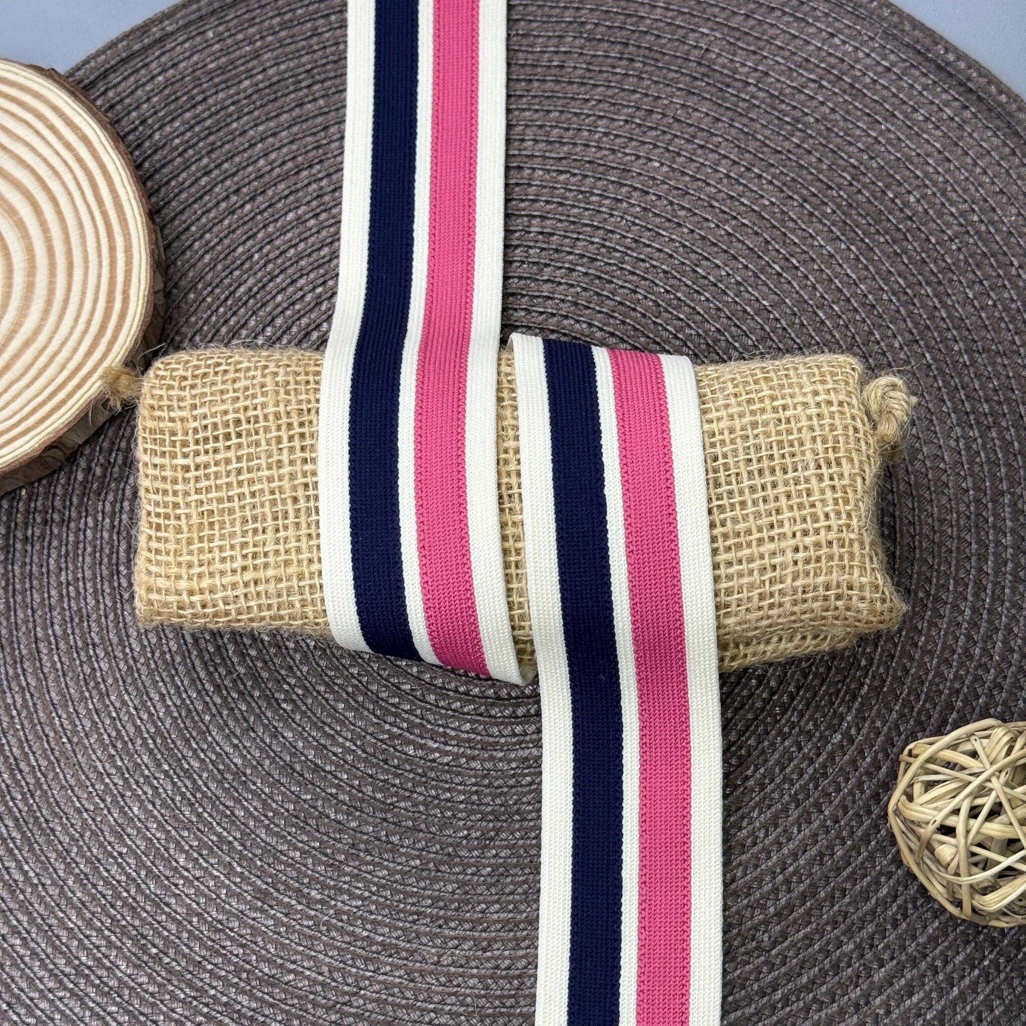 Лампас трикотажний D#4-1 4 см (50 м), C:12 рожевий+синій