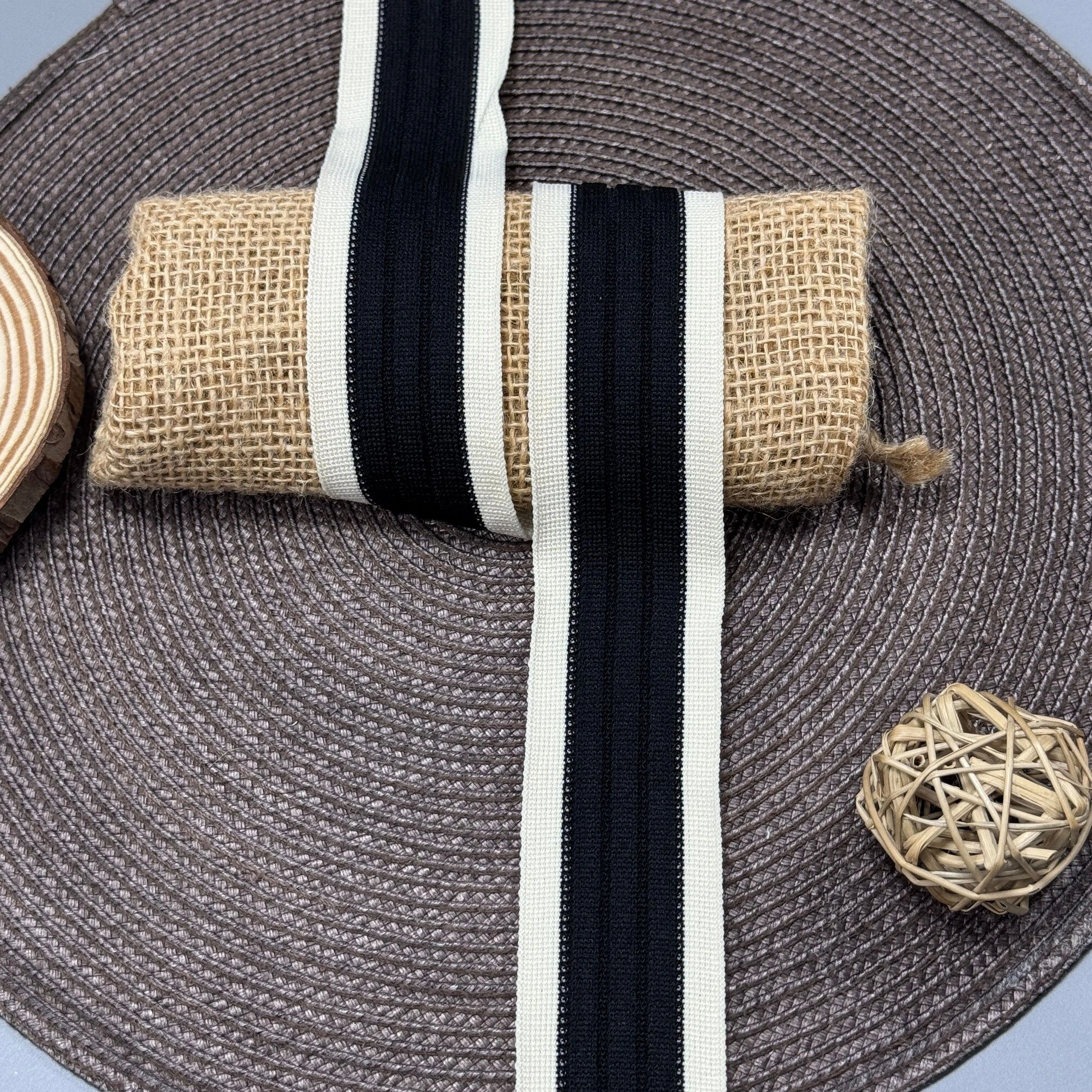Лампас трикотажний D#4 4 см (50 м), C:6 чорний+молочний