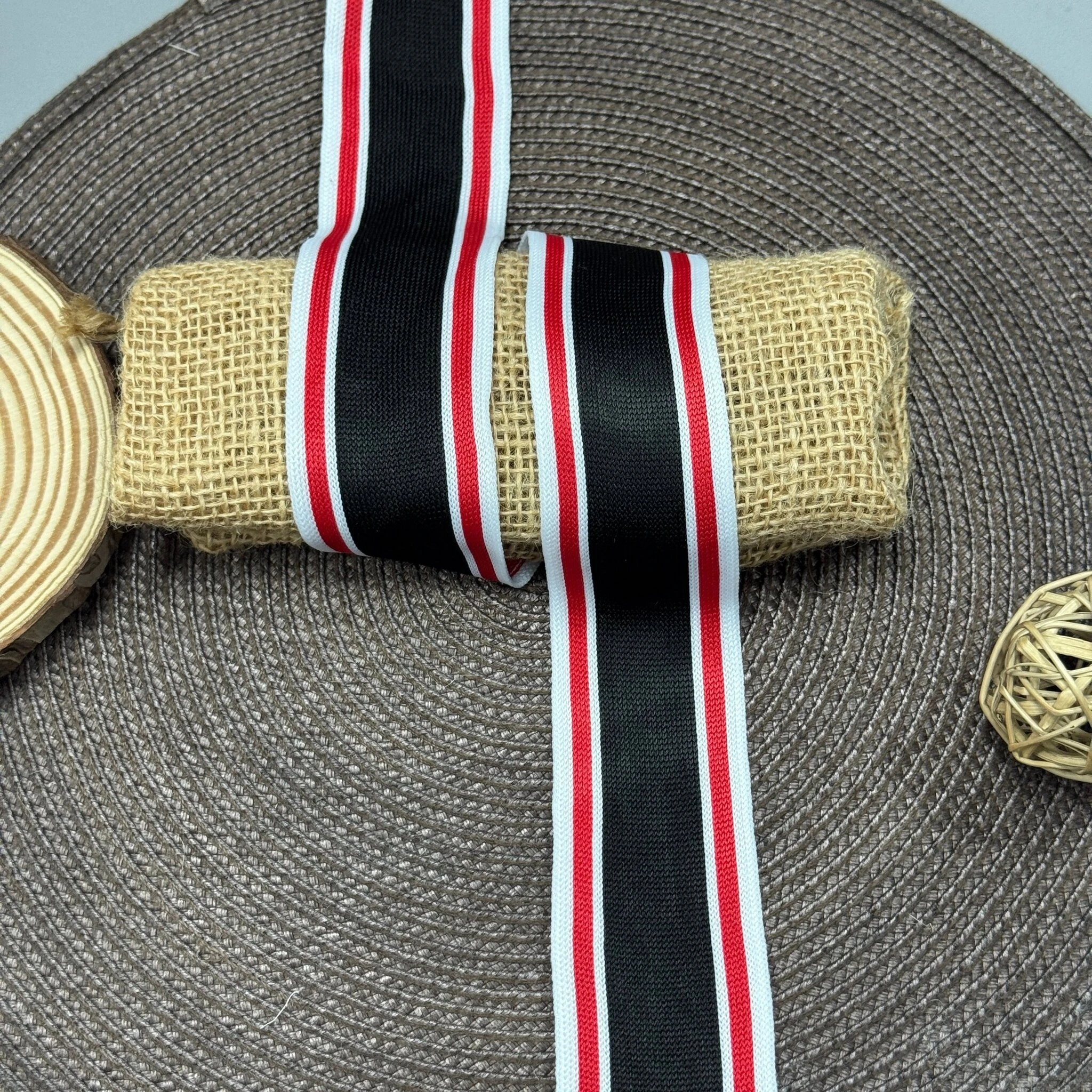 Лампас трикотажний D#8 4 см (50 м), білий+червоний+чорний