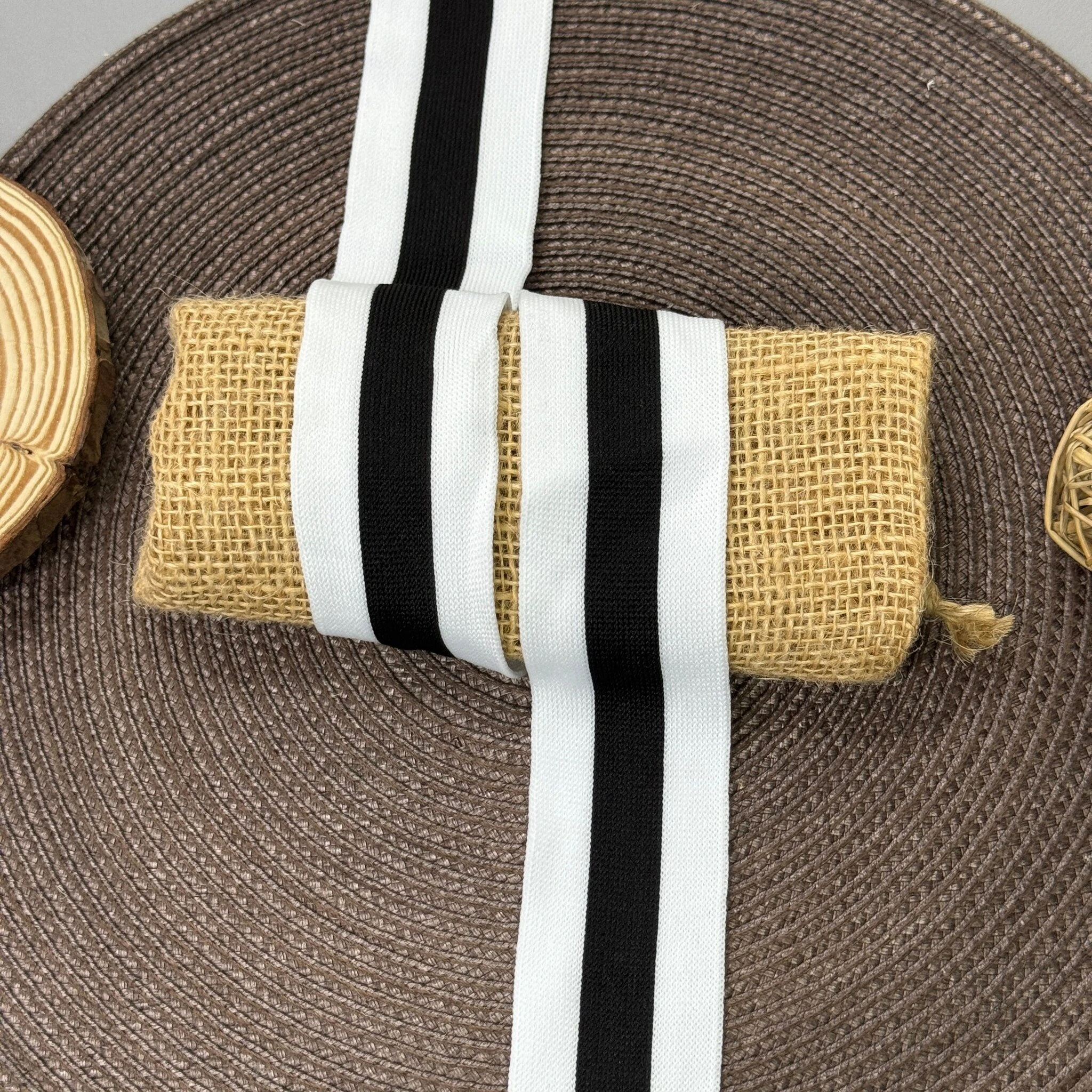 Лампас трикотажний D#8 4 см (50 м), білий+чорний 3