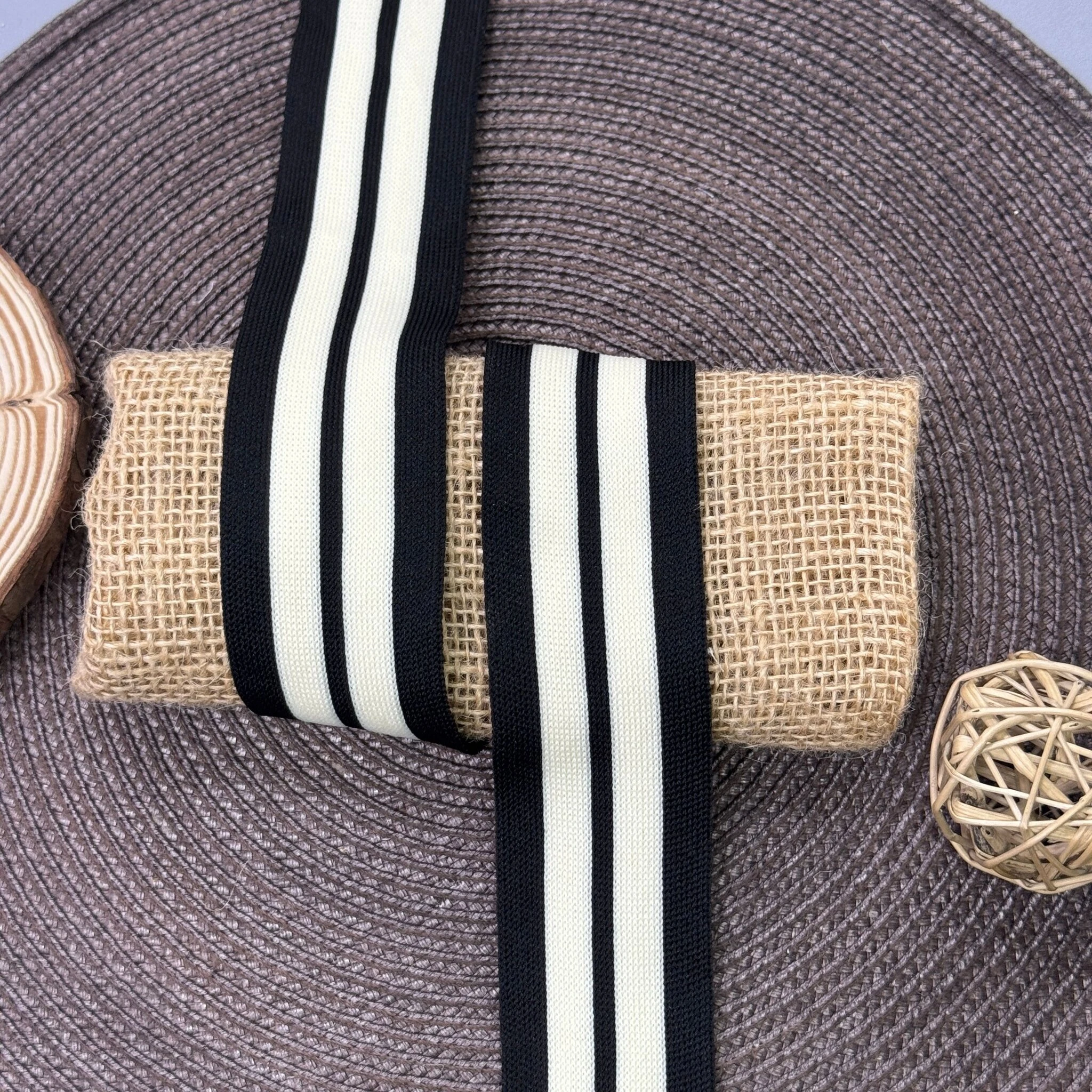 Лампас трикотажний D#8 4 см (50 м), чорний+молочний
