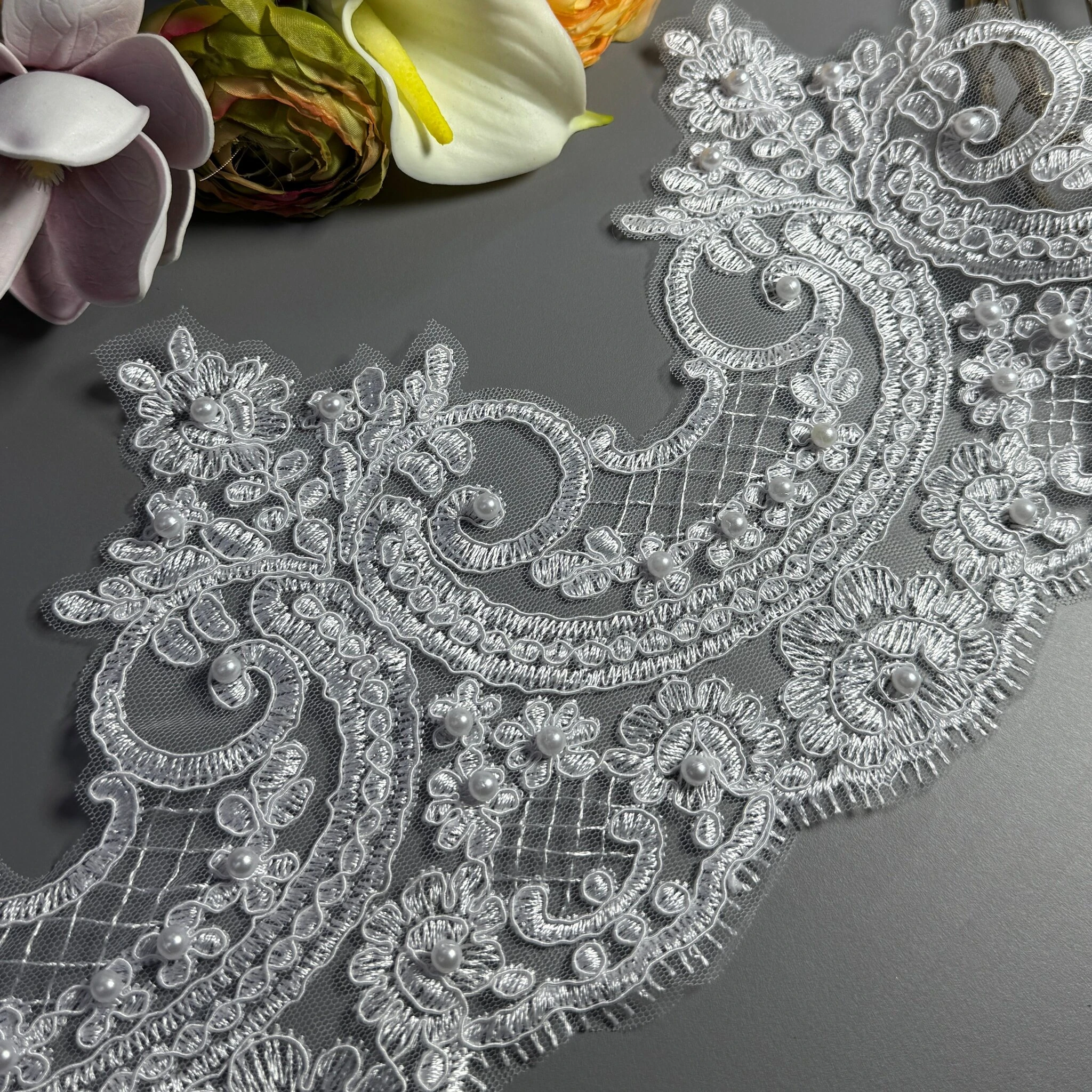 Мережево з кордовую ниткою GD602854В+перли 17 см.(16 ярдів/14.6 м.), білий