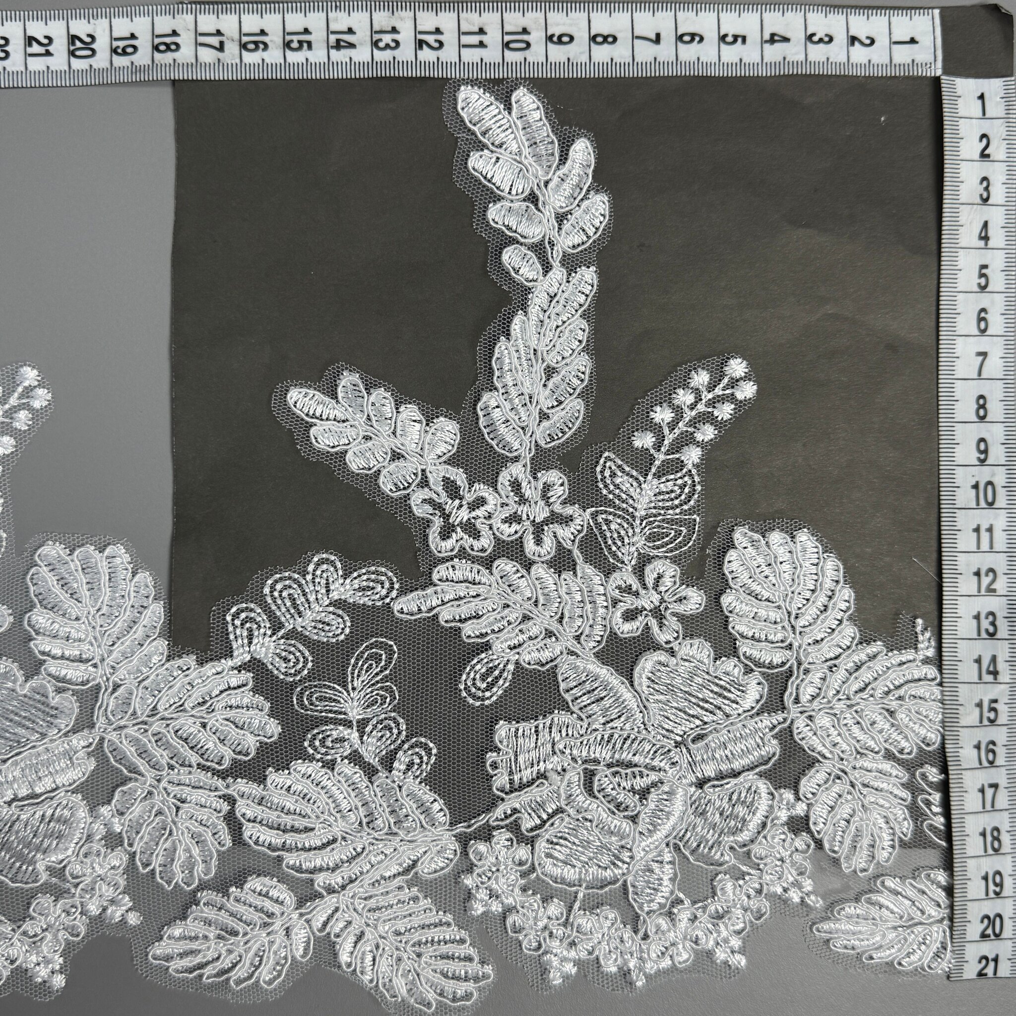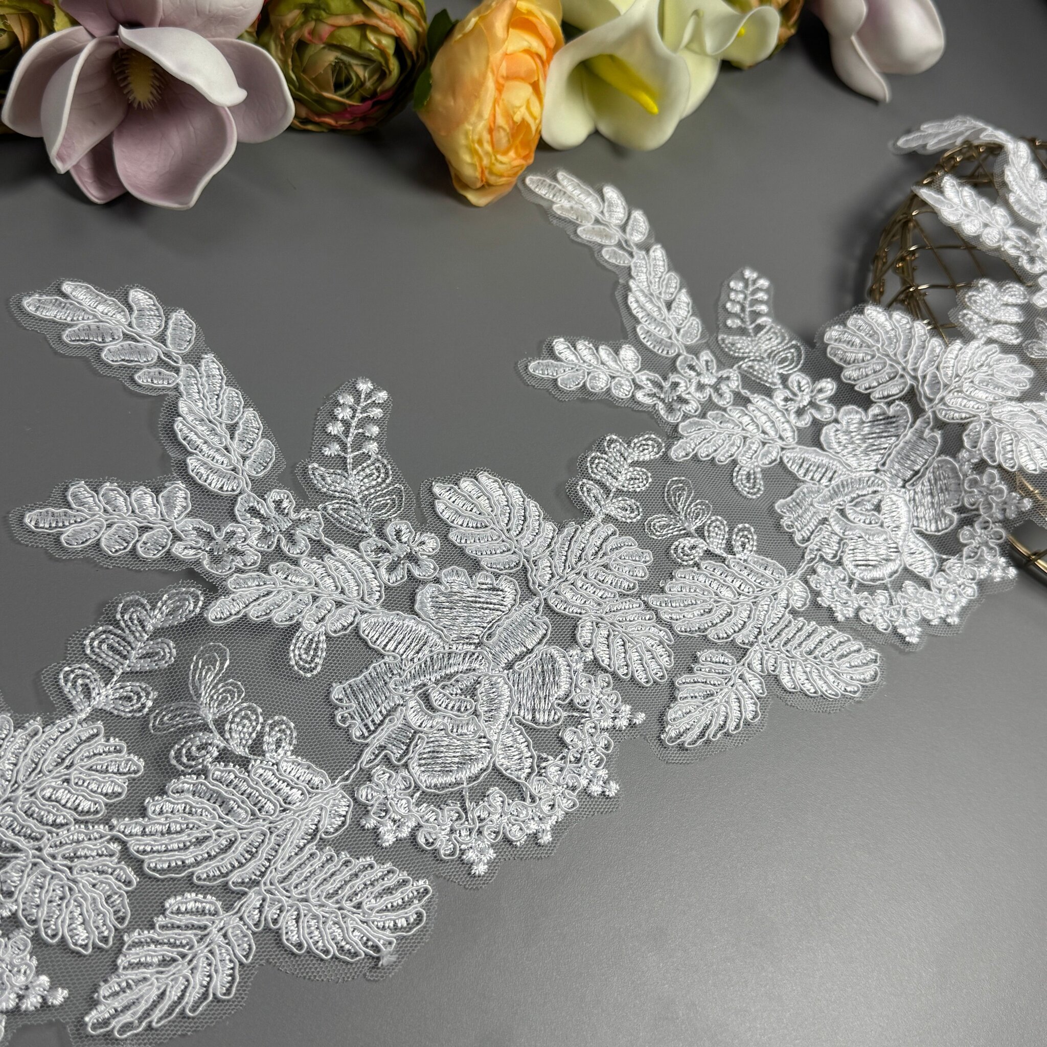 Мереживо з кордовою ниткою – це вишуканий матеріал, у якому ніжний візерунок додатково підкреслений тонкою рельєфною ниткою. Завдяки цьому мереживо виглядає більш об’ємним, фактурним та елегантним.