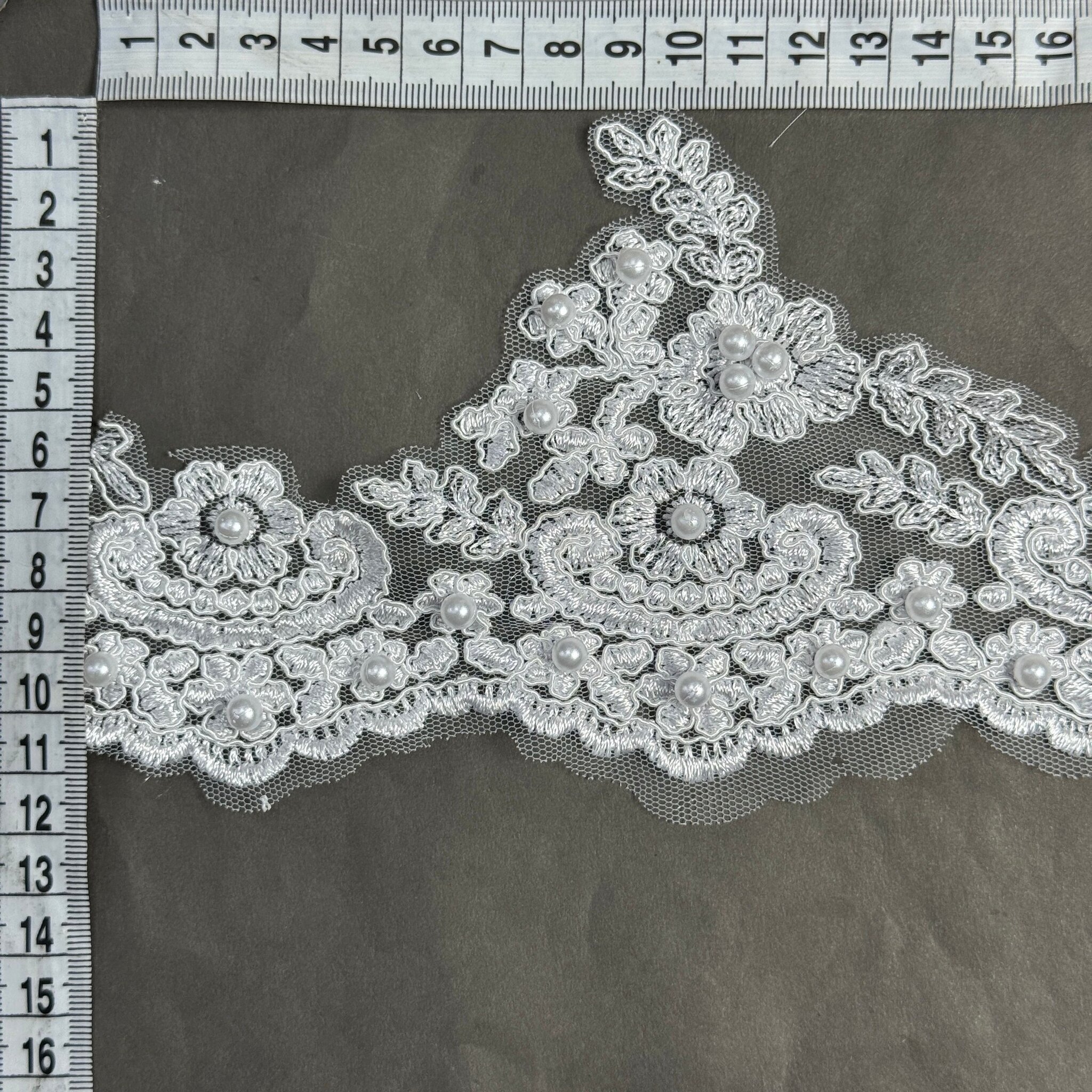 Мережево з кордовую ниткою Т600009А+перли 12 см. (16 ярдів/14.6 м.), білий