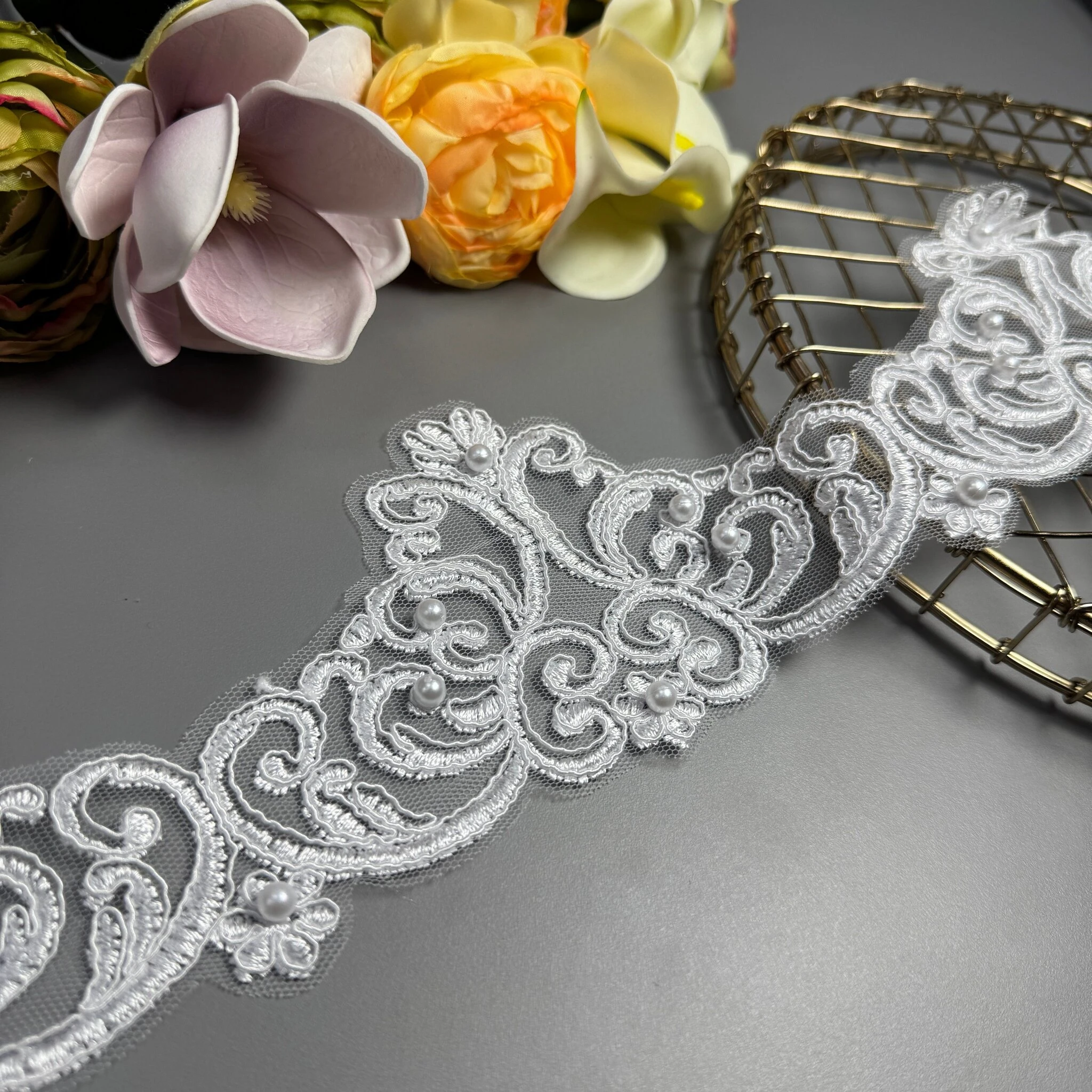 Мережево з кордовую ниткою Т600010А+перли 10 см (16 ярдів/14.6 м.), білий