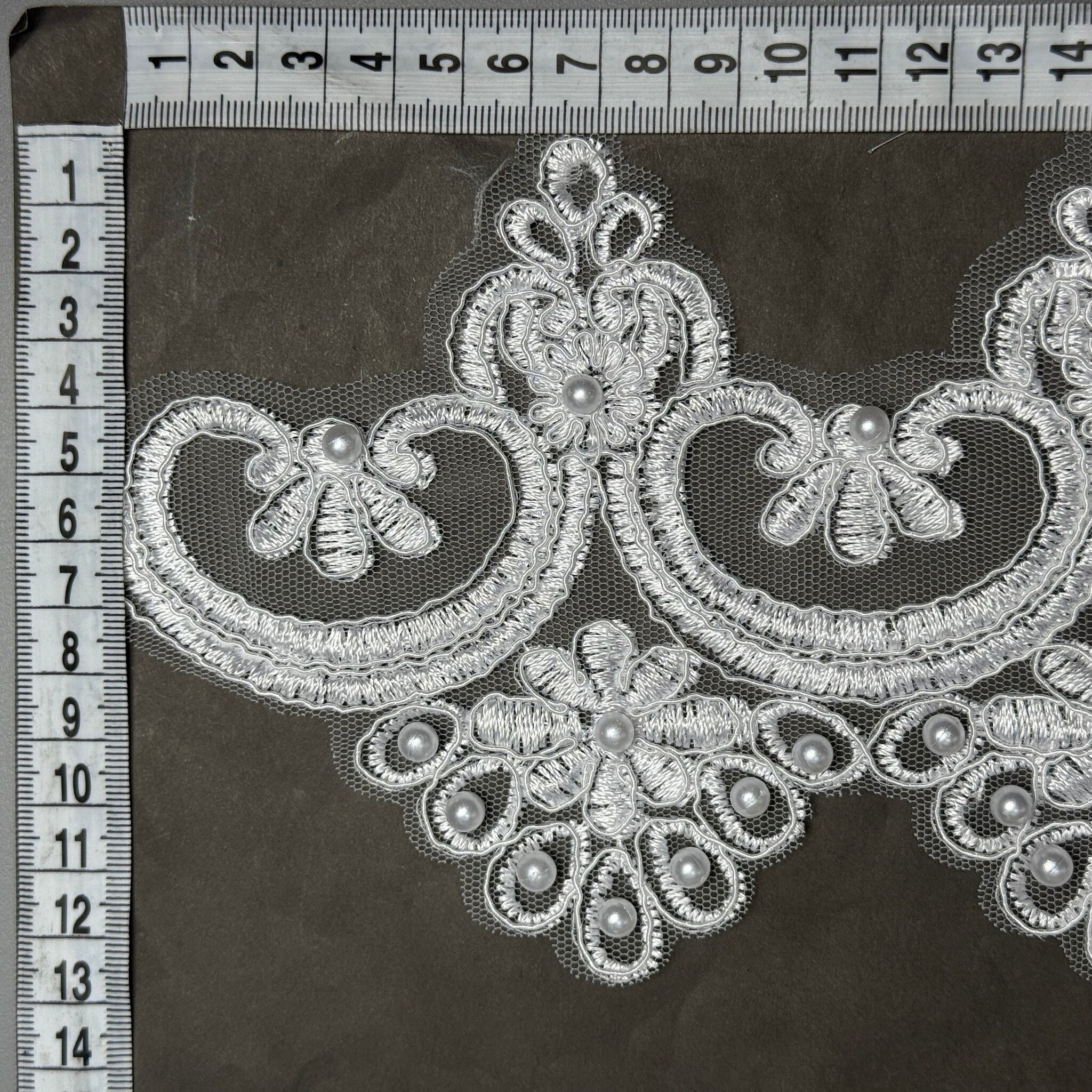 Мережево з кордовую ниткою Т600017А+перли 13 см. (16 ярдів/14.6 м.), білий