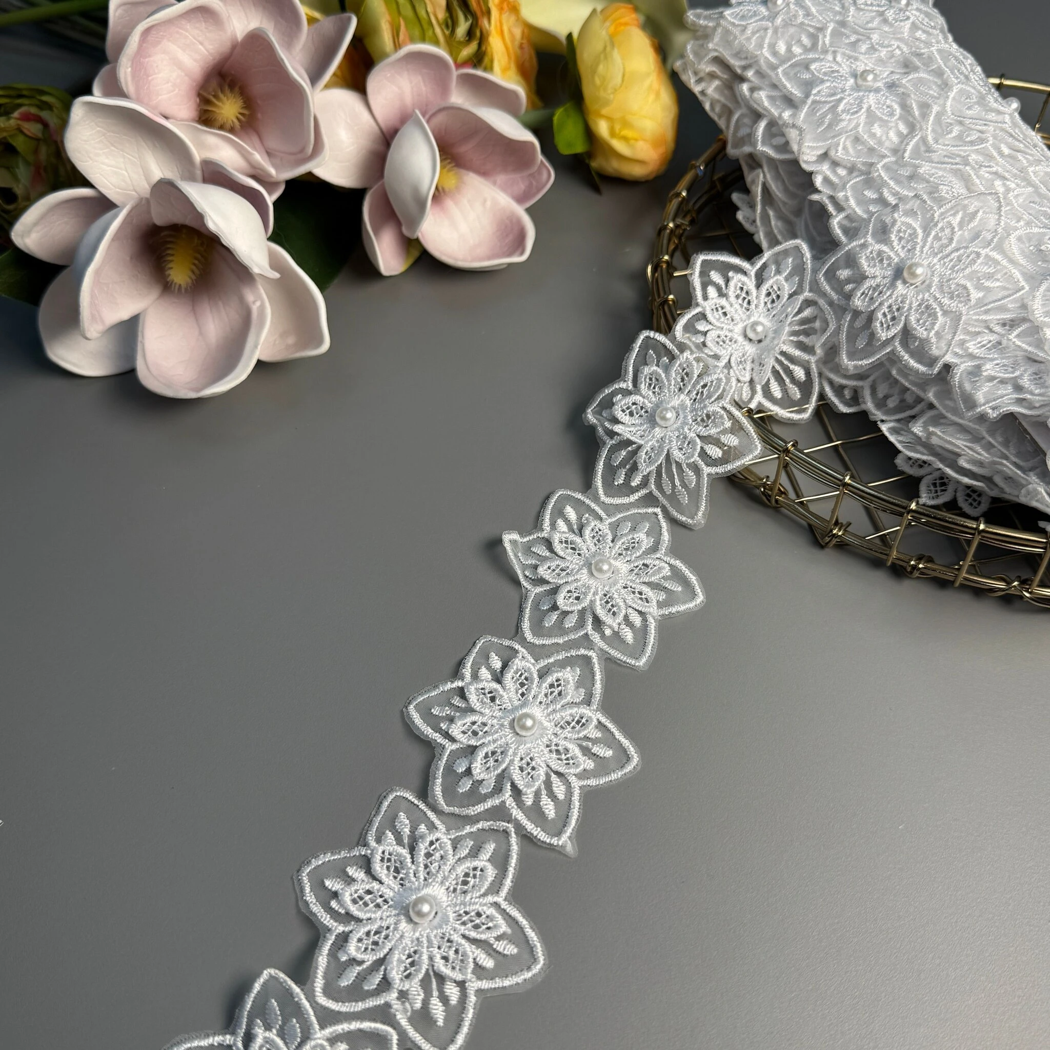 Мереживо поліестер 3D 7 см. H3795 (10 ярд/9.1 м.), білий