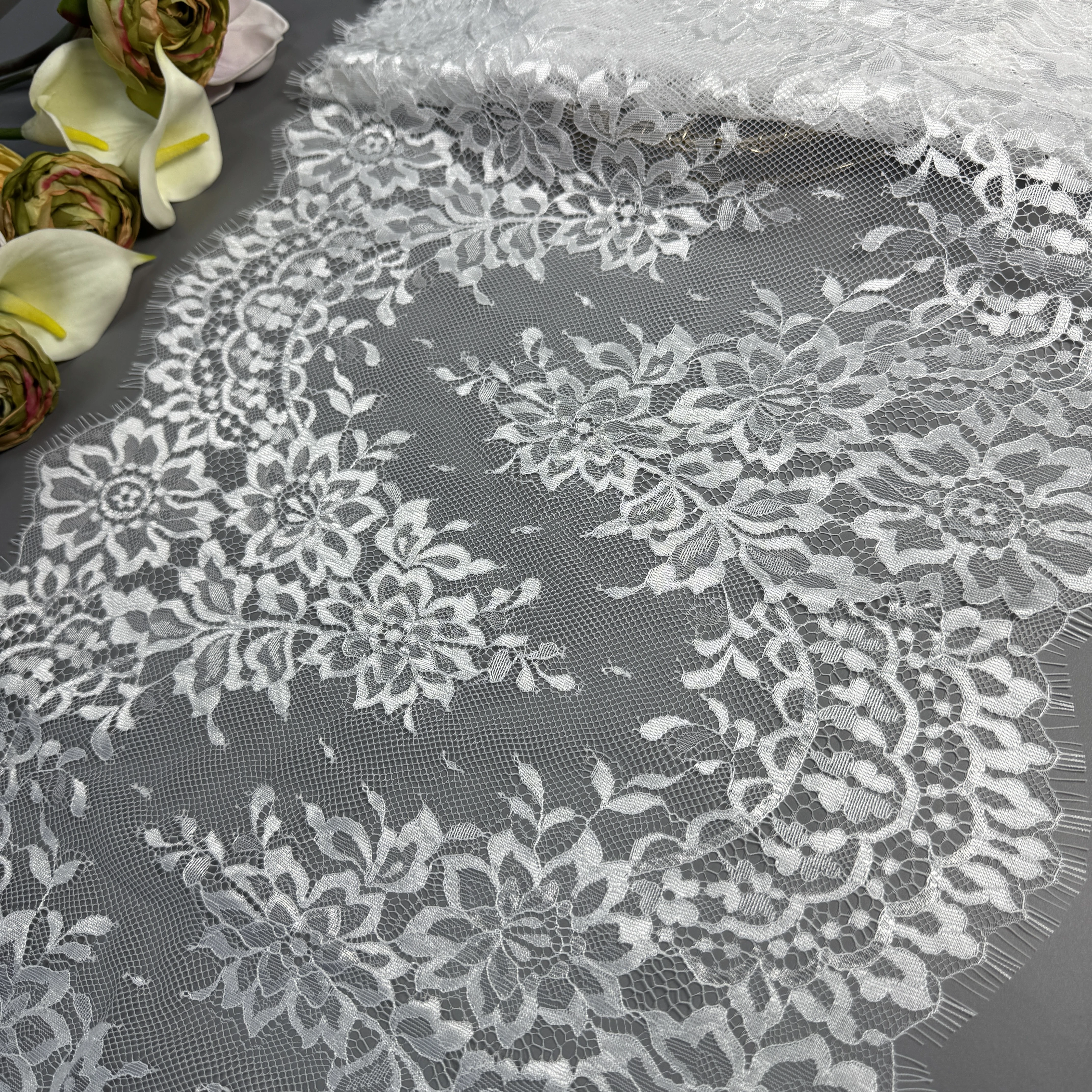Це мереживо цінується кутюр’є в усьому світі за свою естетику, легкість і бездоганну деталізацію. Французьке мереживо — це не просто тканина, а справжнє мистецтво, яке надає кожному виробу унікального шарму та розкоші.