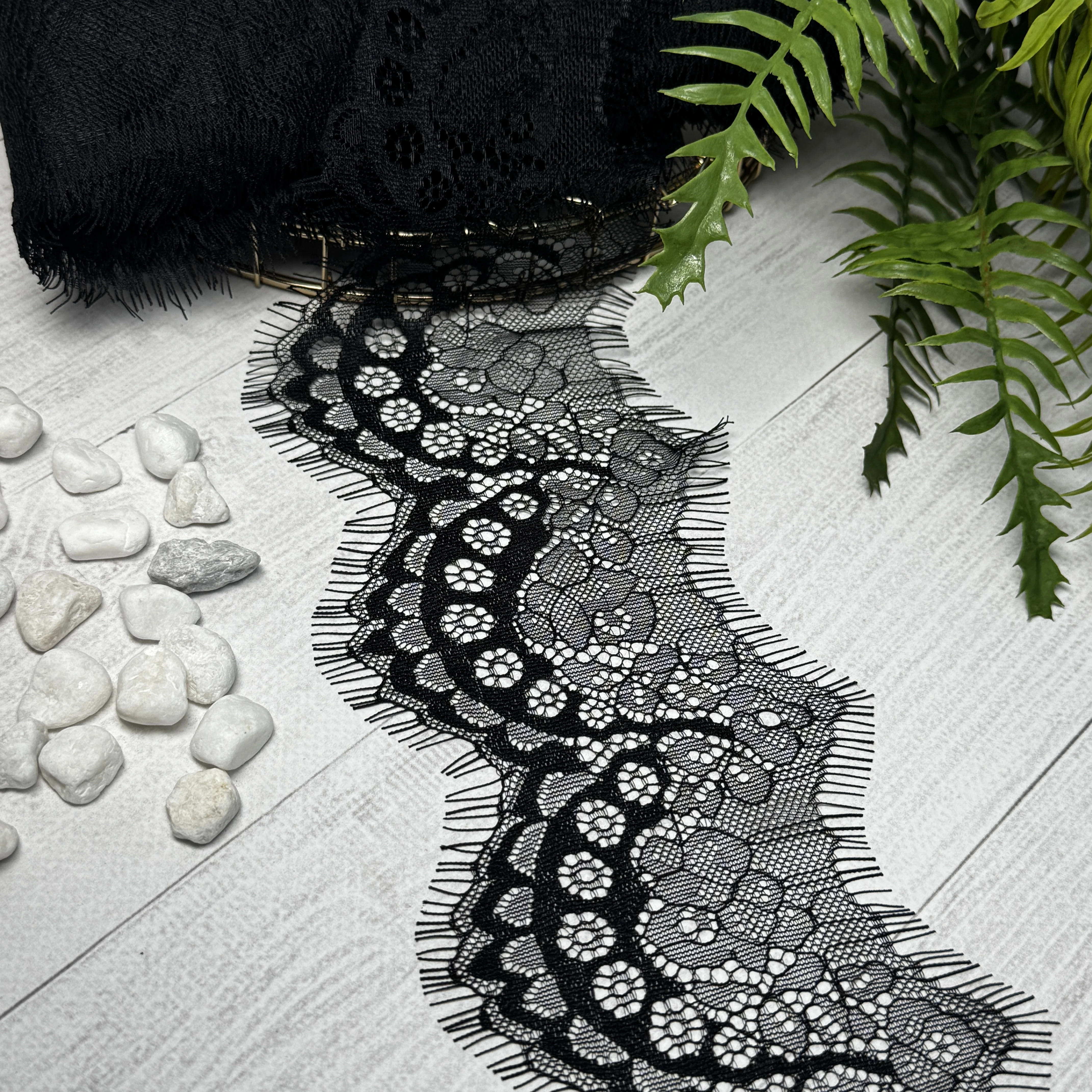 Французьке мереживо Шантильї — символ витонченості та елегантності. Легке, тонке й повітряне мереживо з вишуканим квітковим візерунком ідеально підходить для весільних та вечірніх суконь, блуз, білизни та декоративного оздоблення. Додає виробам розкішного та благородного вигляду.
