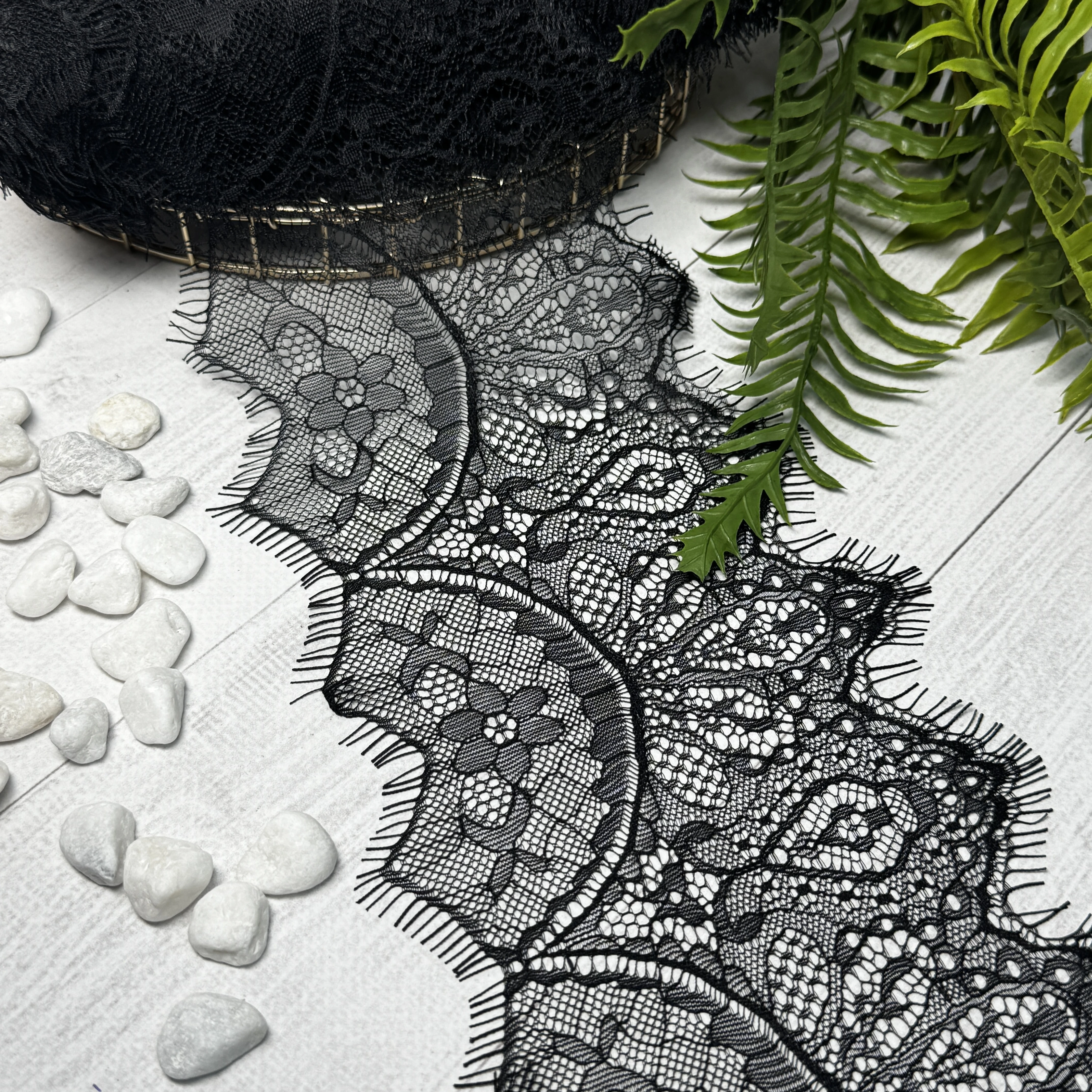 Французьке мереживо Шантильї — символ витонченості та елегантності. Легке, тонке й повітряне мереживо з вишуканим квітковим візерунком ідеально підходить для весільних та вечірніх суконь, блуз, білизни та декоративного оздоблення. Додає виробам розкішного та благородного вигляду.