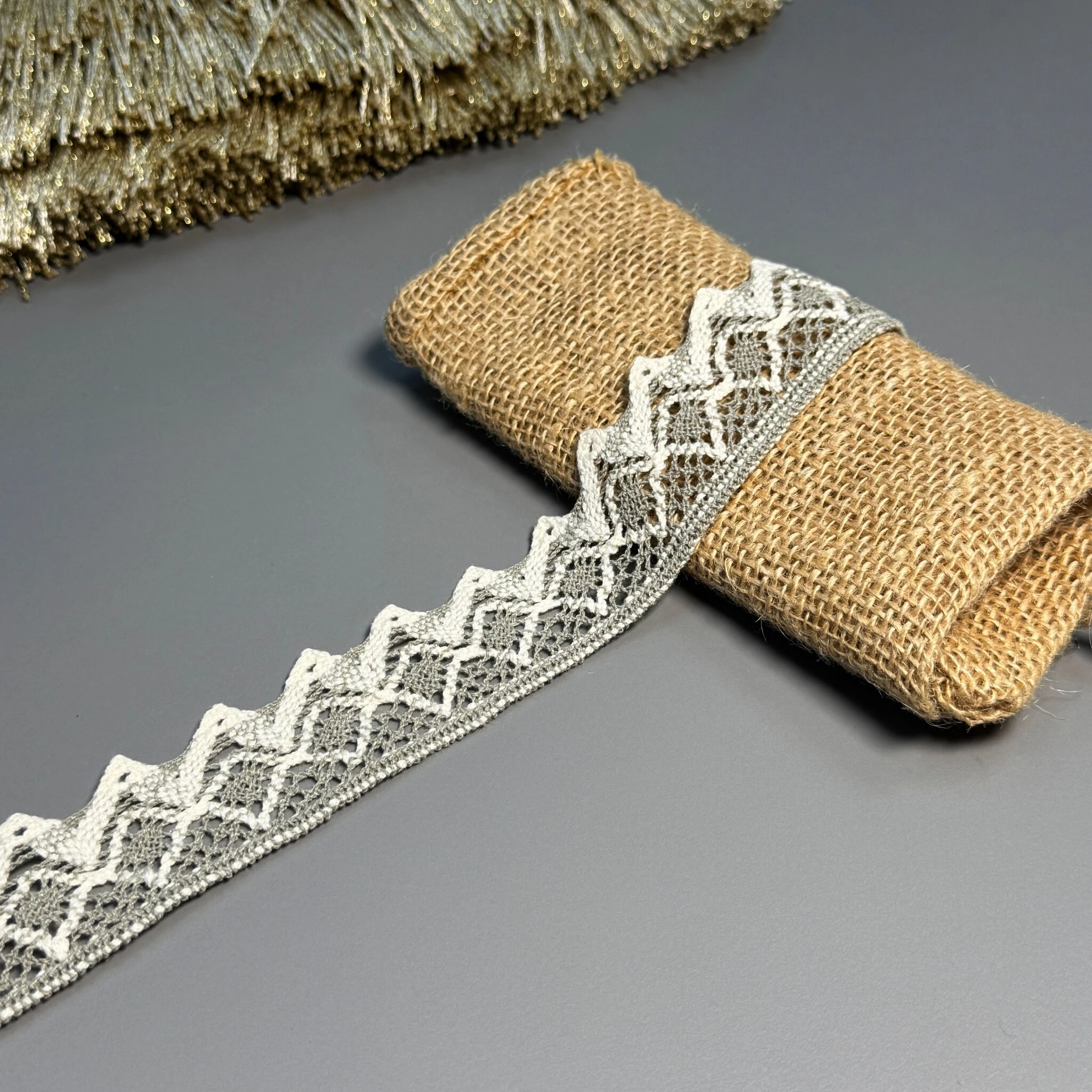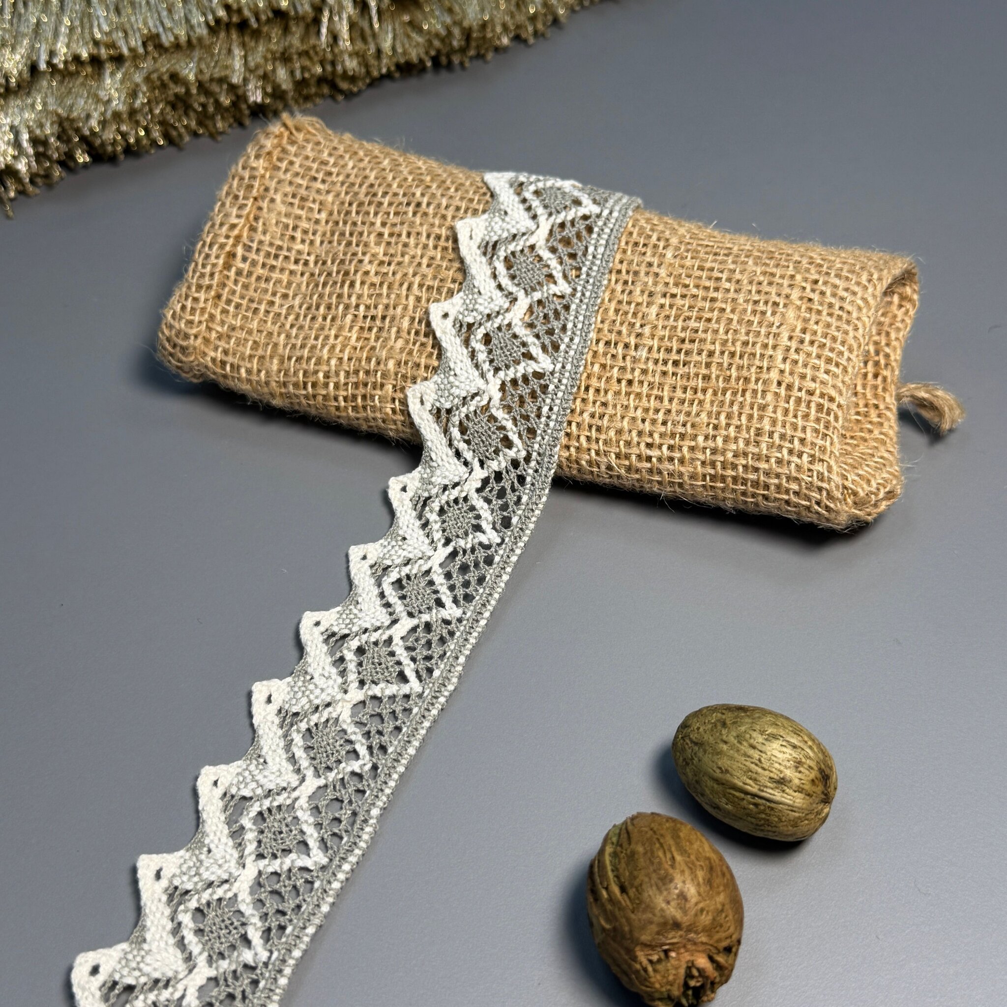 Мереживо макраме 11-4 (200 ярдів/182,8 м.), сірий+бежевий