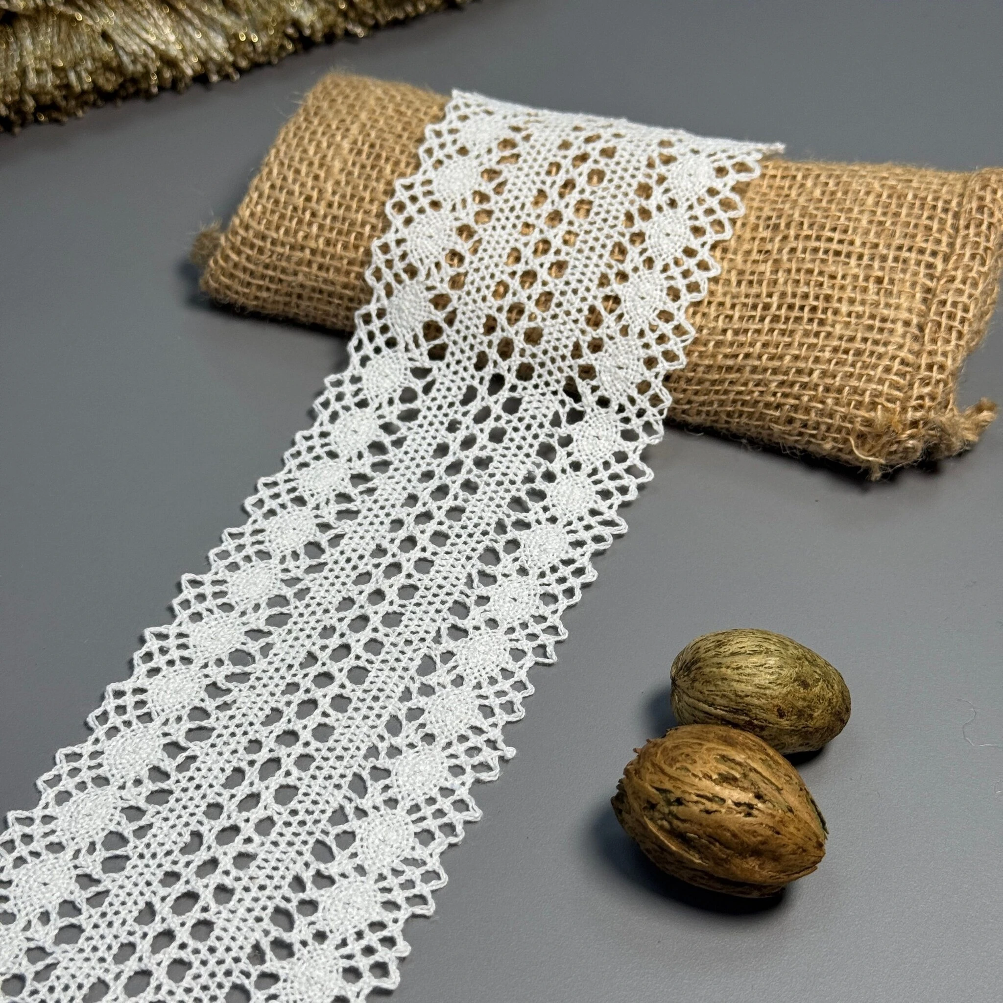 Мереживо макраме - тканина ніжна, приємна на дотик, не тягнеться.