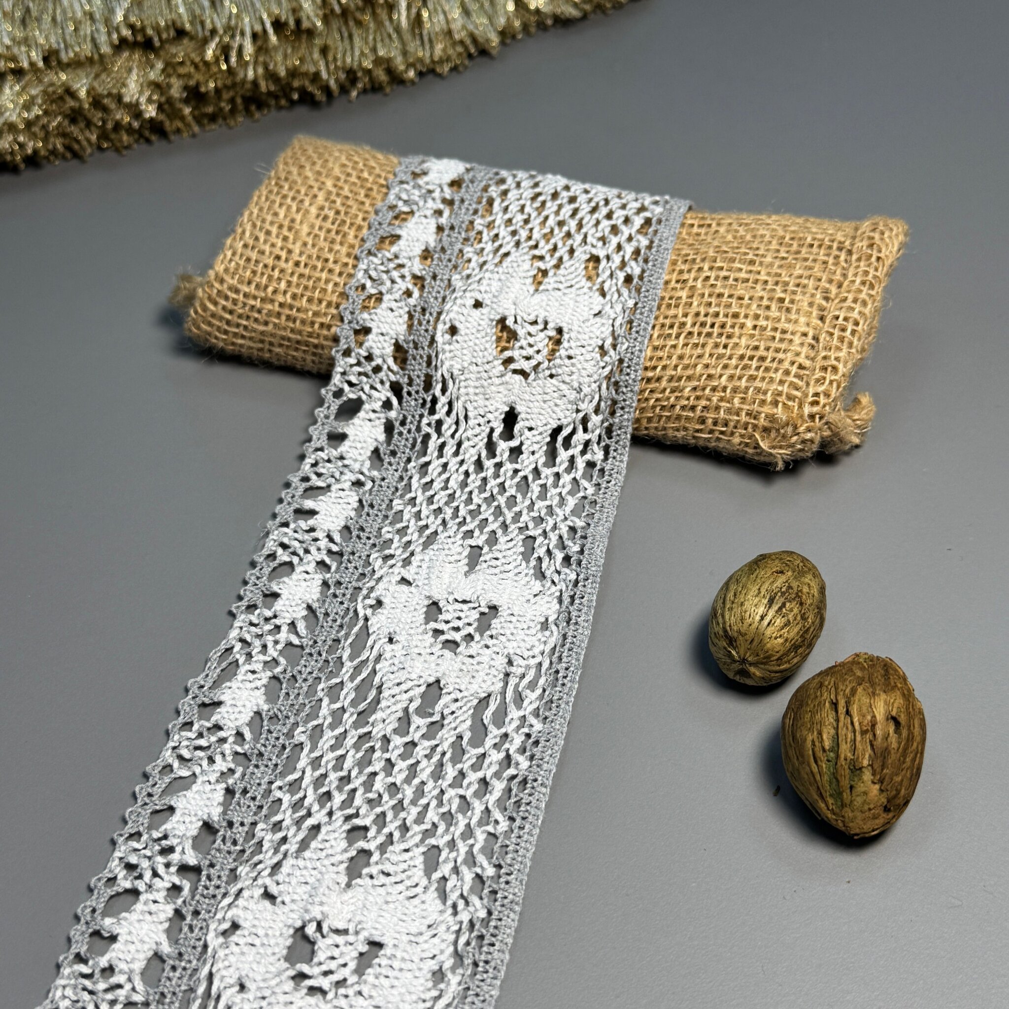 Мереживо макраме 8609 8 см (100 ярдів/91,4 м.), сірий+білий