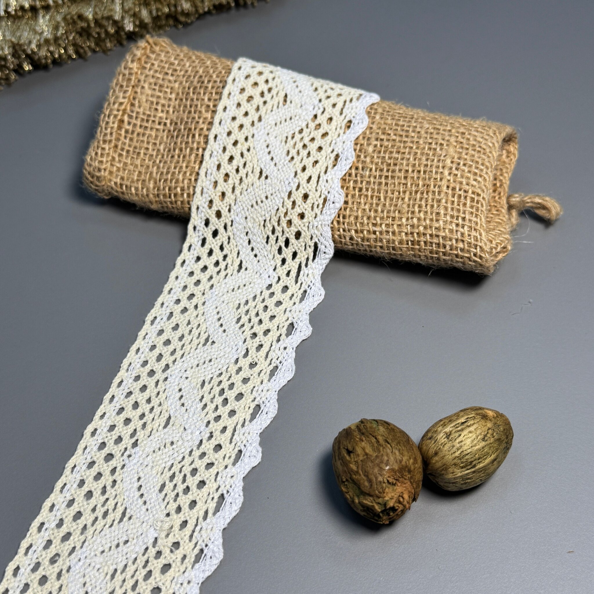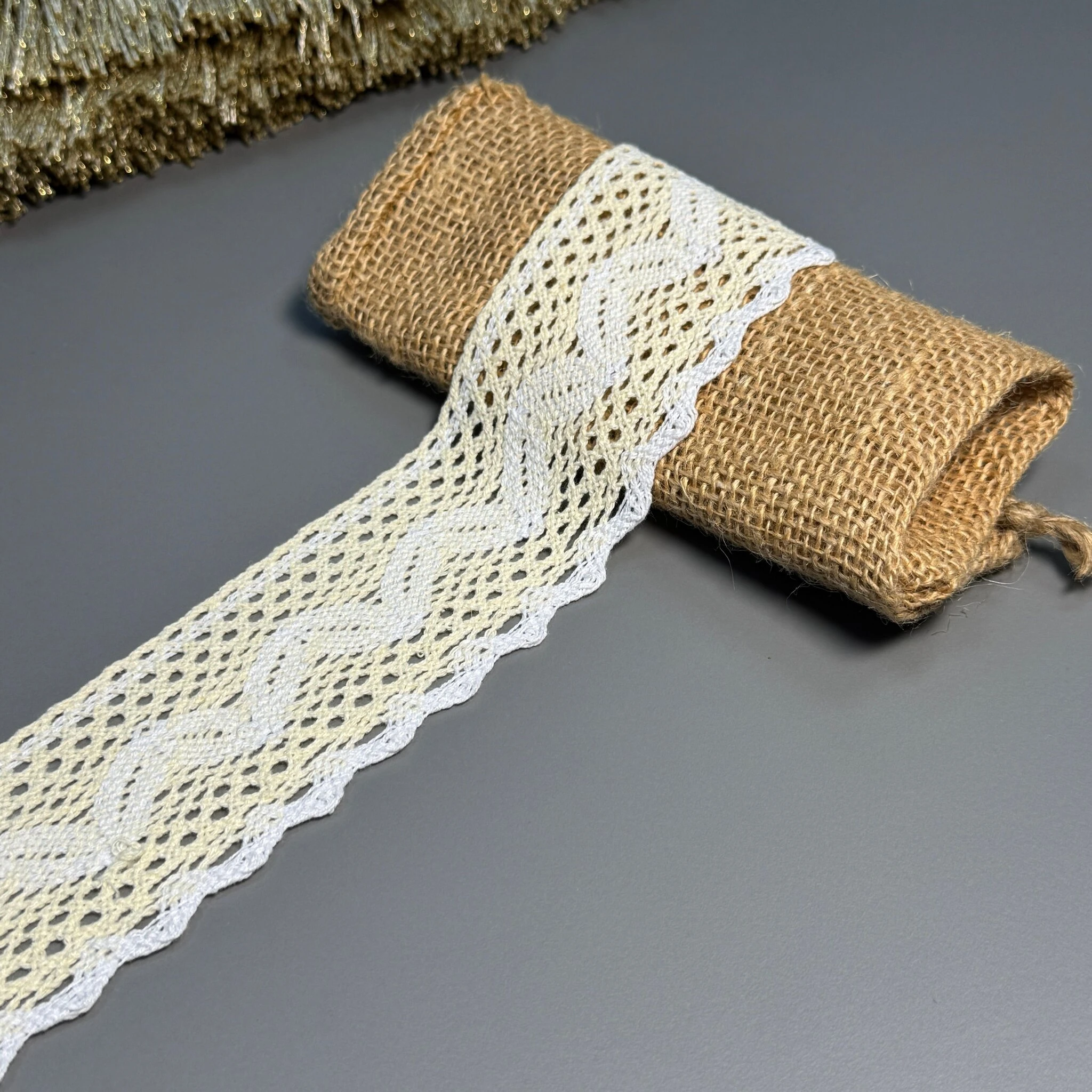 Мереживо макраме А 6037 6 см (100 ярдів/91,4 м.), бежевий+білий