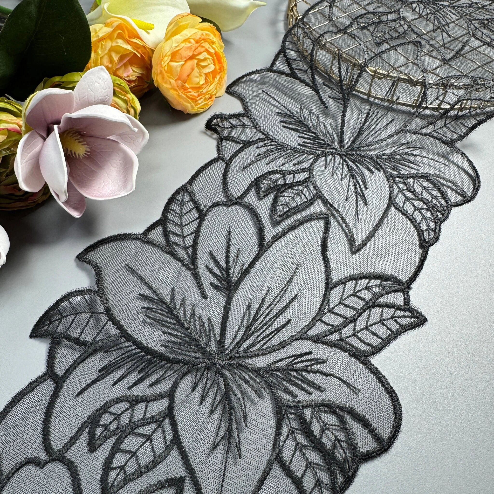 Мереживо органза GD602871 20 см (16 ярдів/14.6 м.), чорний