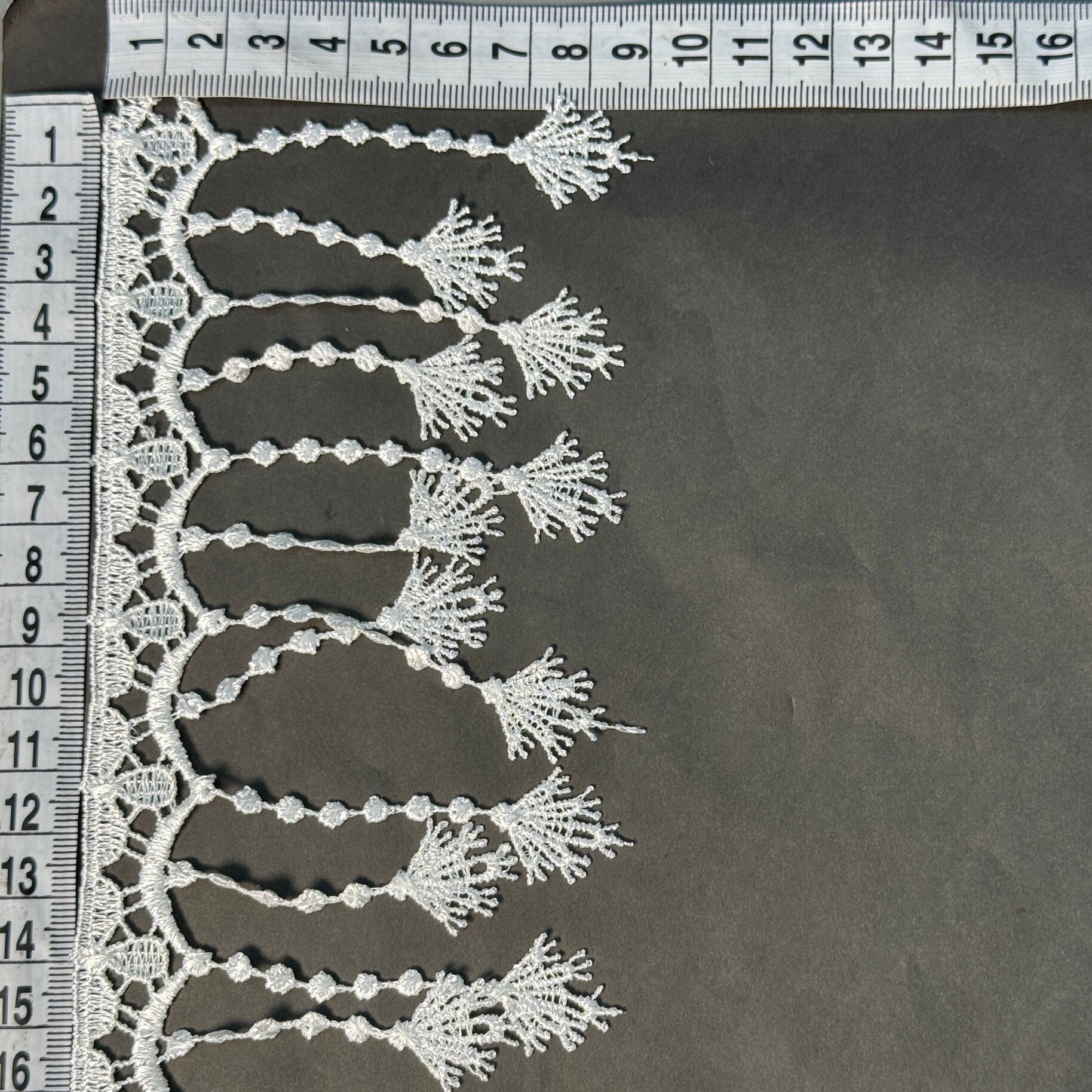 Мереживо поліестер – декоративний матеріал з синтетичного волокна, що відзначається високою зносостійкістю та стабільністю форми. Поліестер не схильний до деформацій, не розтягується і не мнеться, що робить мереживо придатним для частого використання.