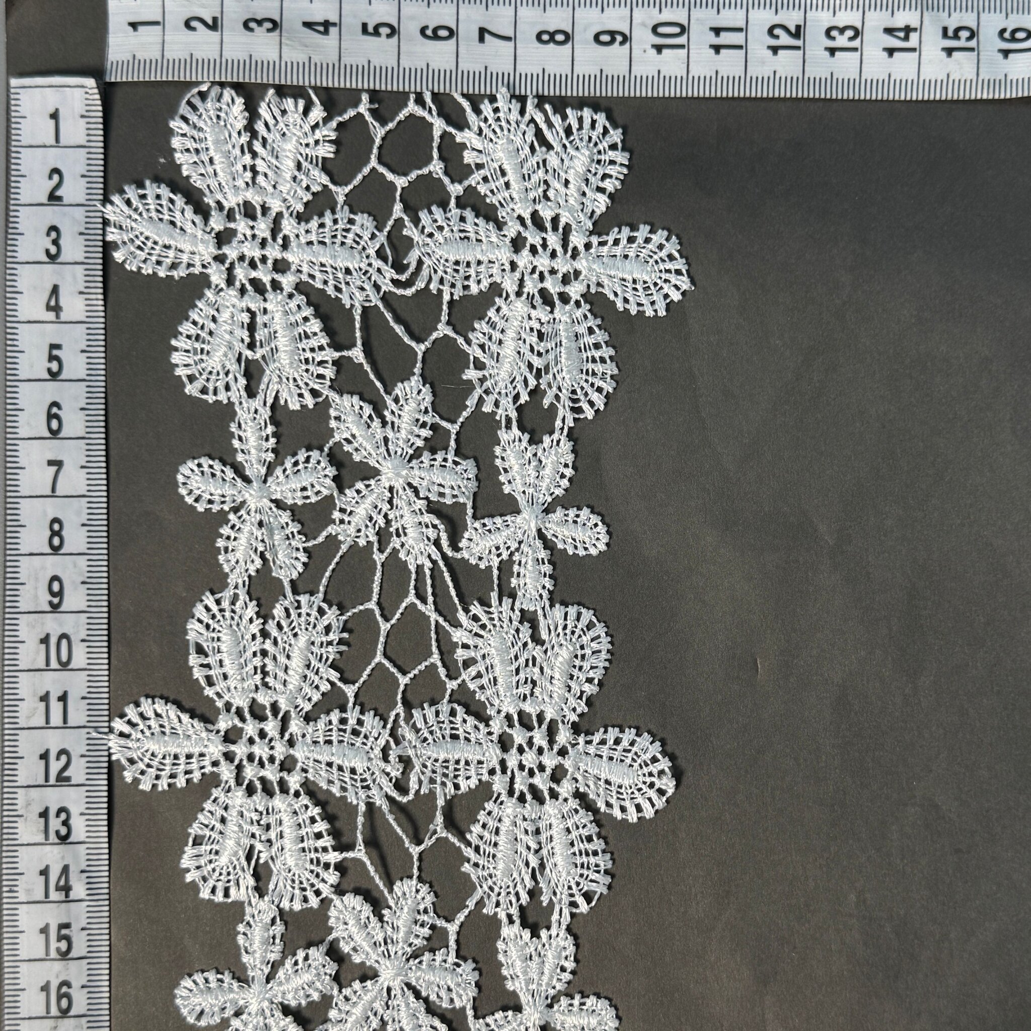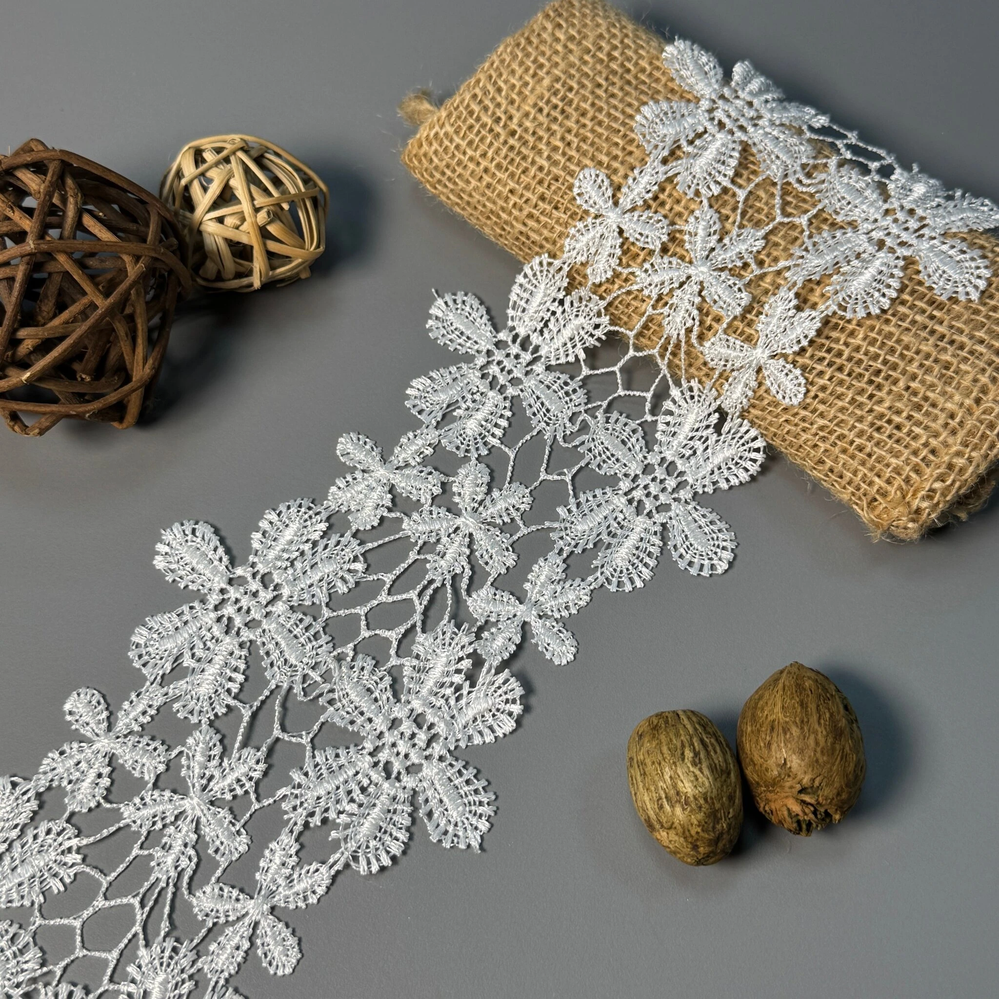 Мереживо поліестер – декоративний матеріал з синтетичного волокна, що відзначається високою зносостійкістю та стабільністю форми. Поліестер не схильний до деформацій, не розтягується і не мнеться, що робить мереживо придатним для частого використання.