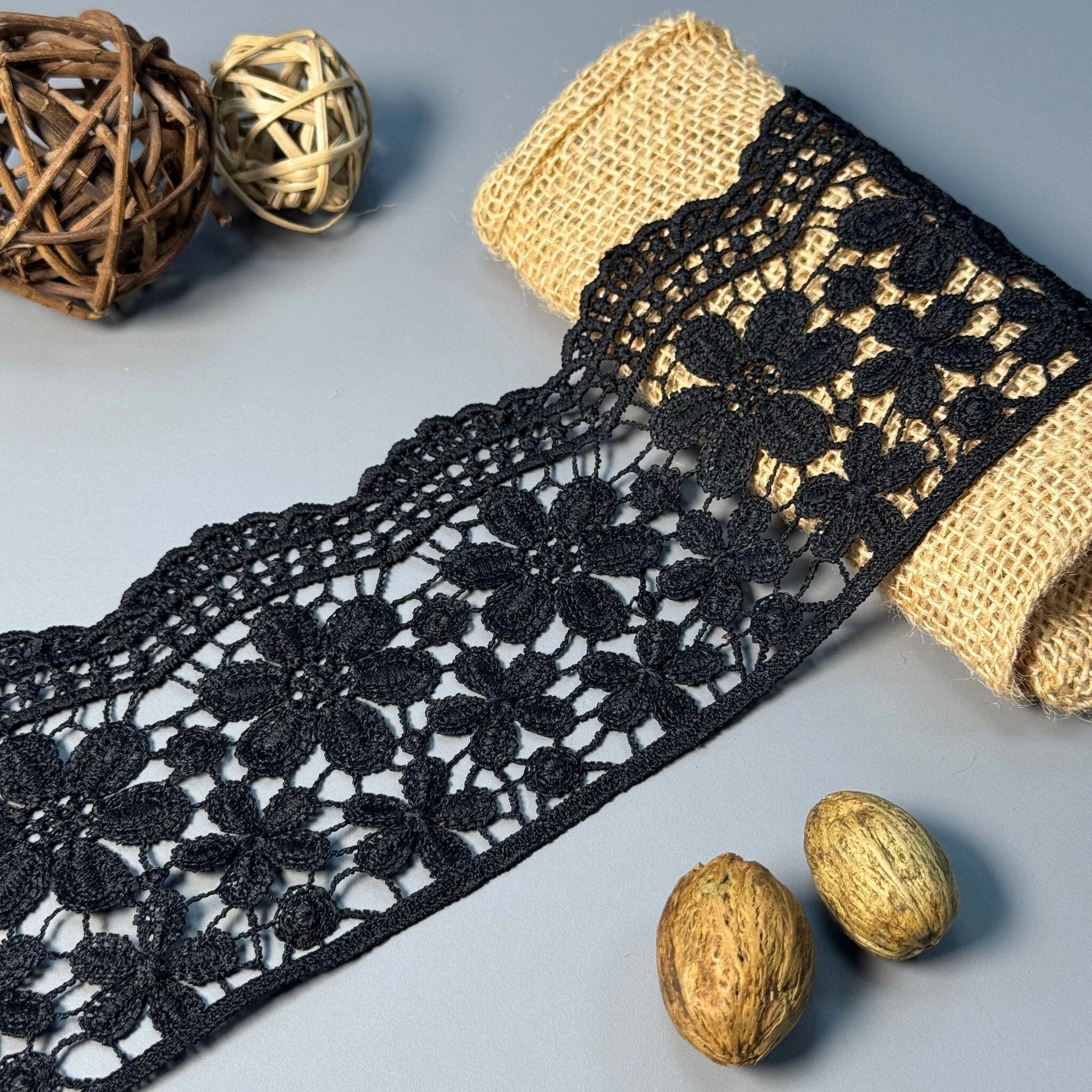 Мереживо поліестер – декоративний матеріал з синтетичного волокна, що відзначається високою зносостійкістю та стабільністю форми. Поліестер не схильний до деформацій, не розтягується і не мнеться, що робить мереживо придатним для частого використання.