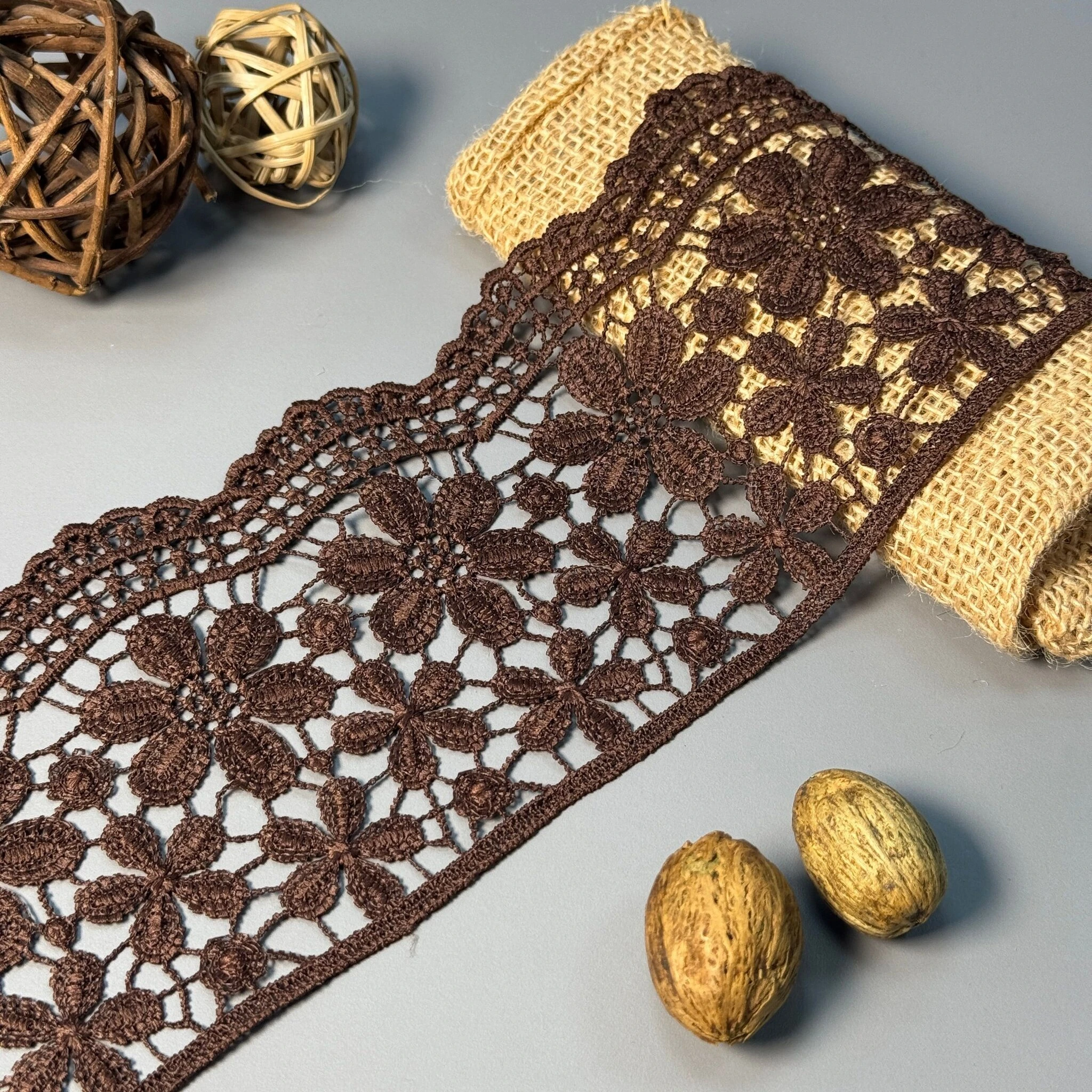 Мереживо поліестер – декоративний матеріал з синтетичного волокна, що відзначається високою зносостійкістю та стабільністю форми. Поліестер не схильний до деформацій, не розтягується і не мнеться, що робить мереживо придатним для частого використання.