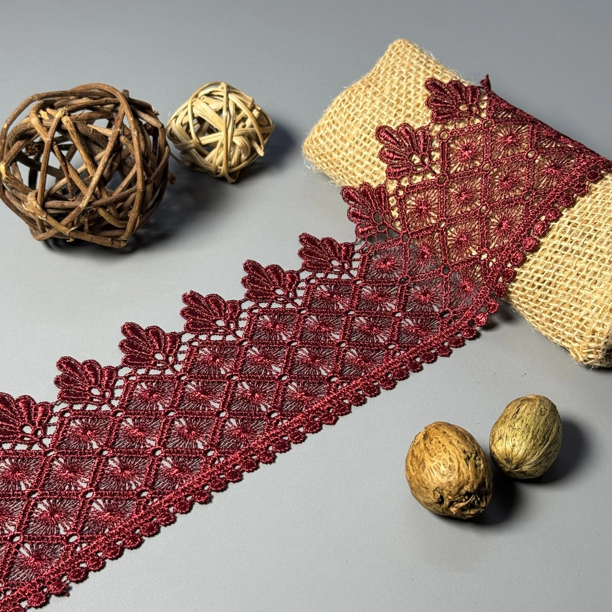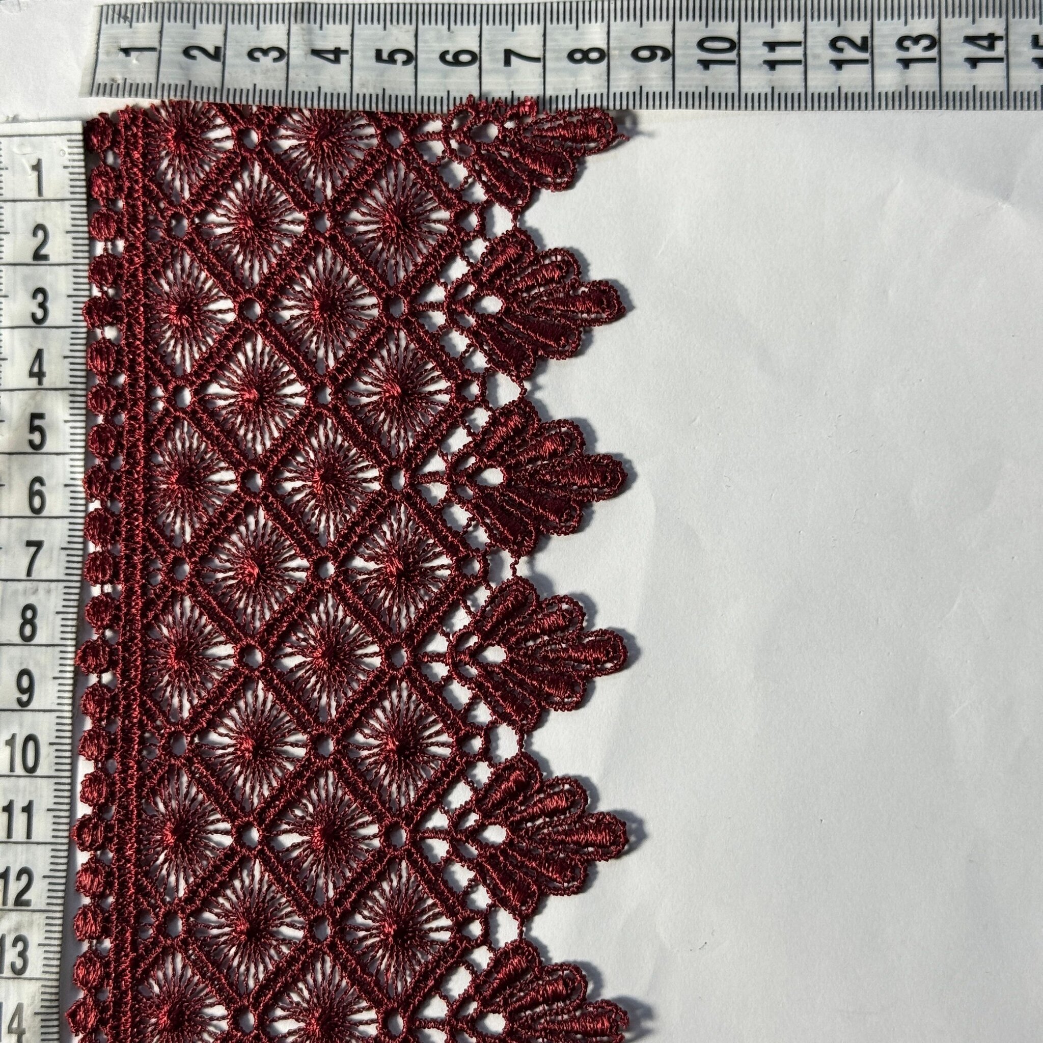 Мереживо поліестер 184 9 см. 9 см.(19-19.5 метрів), бордовий (19.5 метрів)