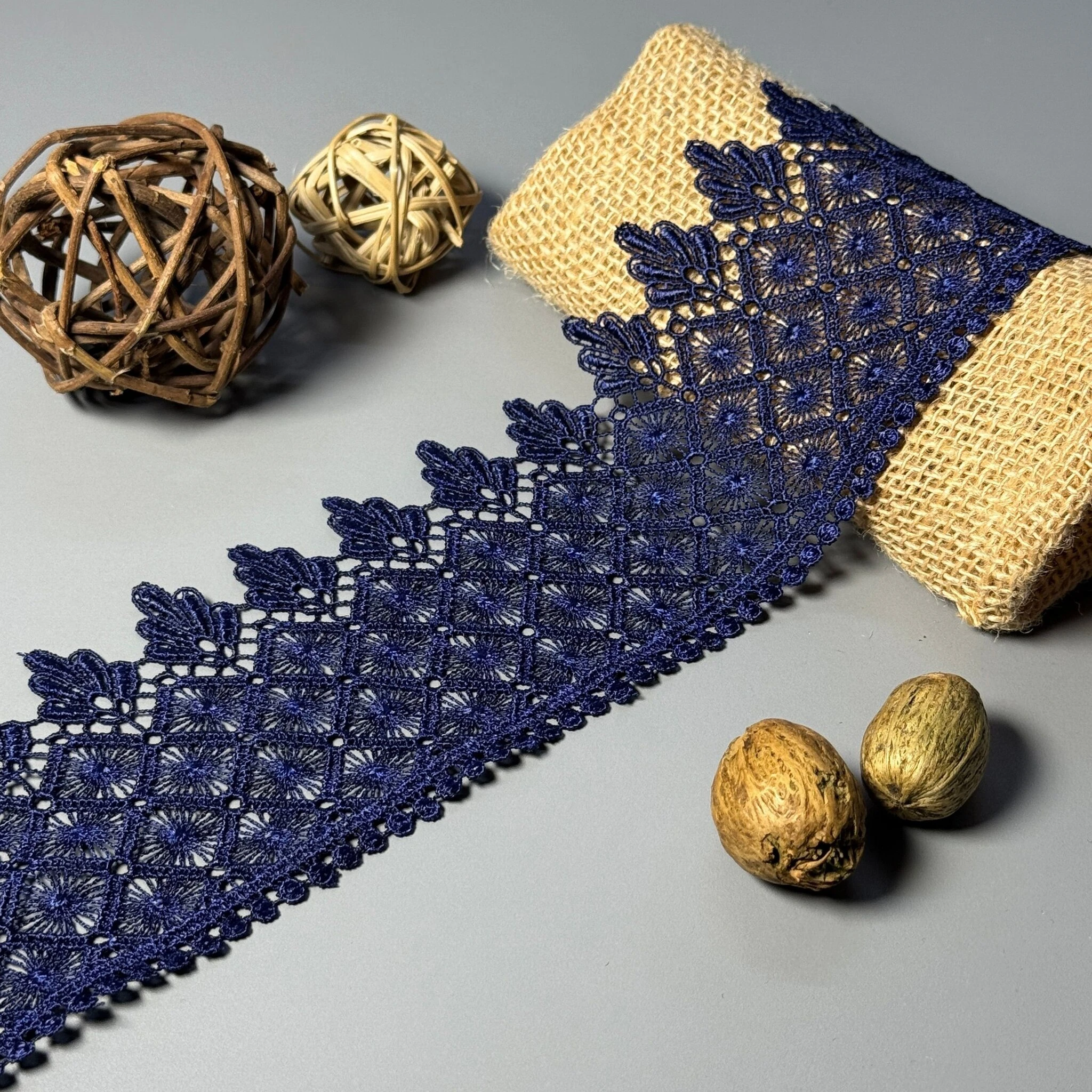 Мереживо поліестер – декоративний матеріал з синтетичного волокна, що відзначається високою зносостійкістю та стабільністю форми. Поліестер не схильний до деформацій, не розтягується і не мнеться, що робить мереживо придатним для частого використання.