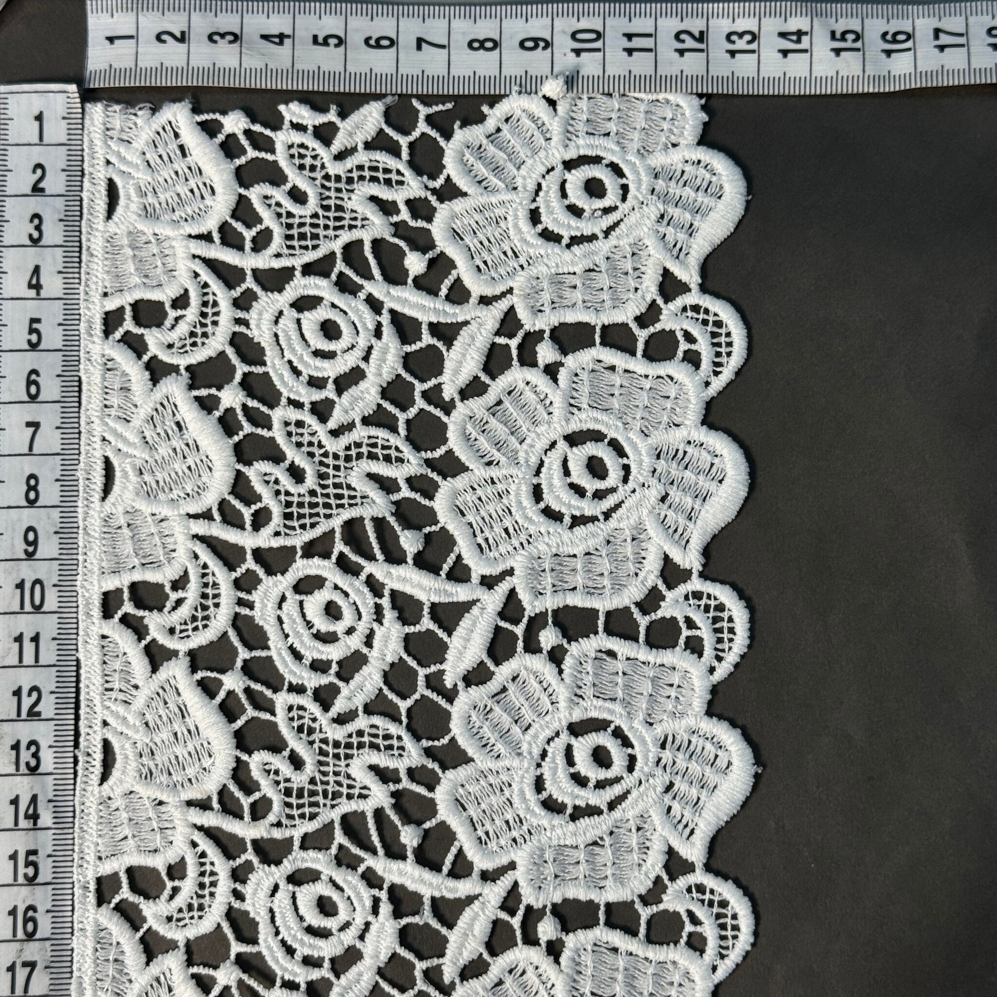 Мереживо поліестер – декоративний матеріал з синтетичного волокна, що відзначається високою зносостійкістю та стабільністю форми. Поліестер не схильний до деформацій, не розтягується і не мнеться, що робить мереживо придатним для частого використання.