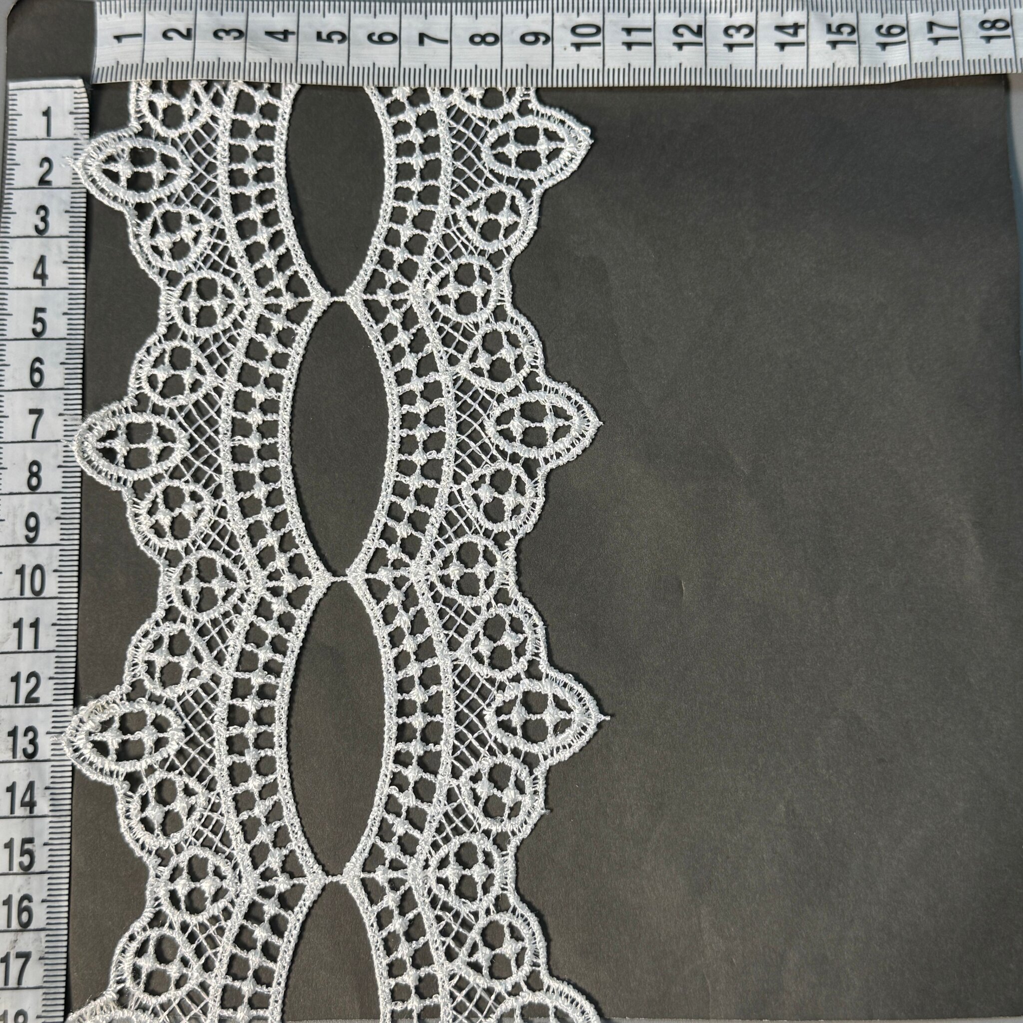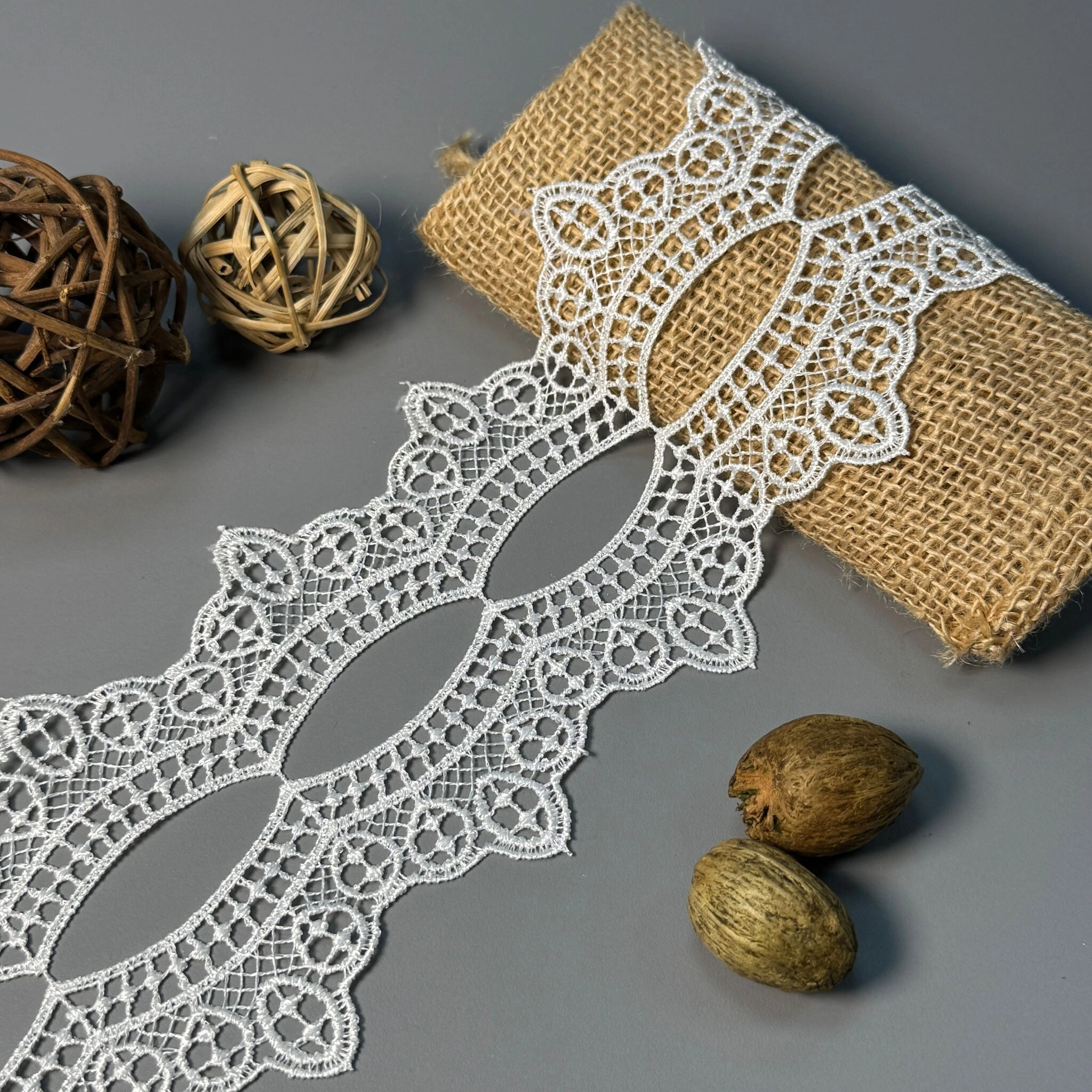 Мереживо поліестер – декоративний матеріал з синтетичного волокна, що відзначається високою зносостійкістю та стабільністю форми. Поліестер не схильний до деформацій, не розтягується і не мнеться, що робить мереживо придатним для частого використання.