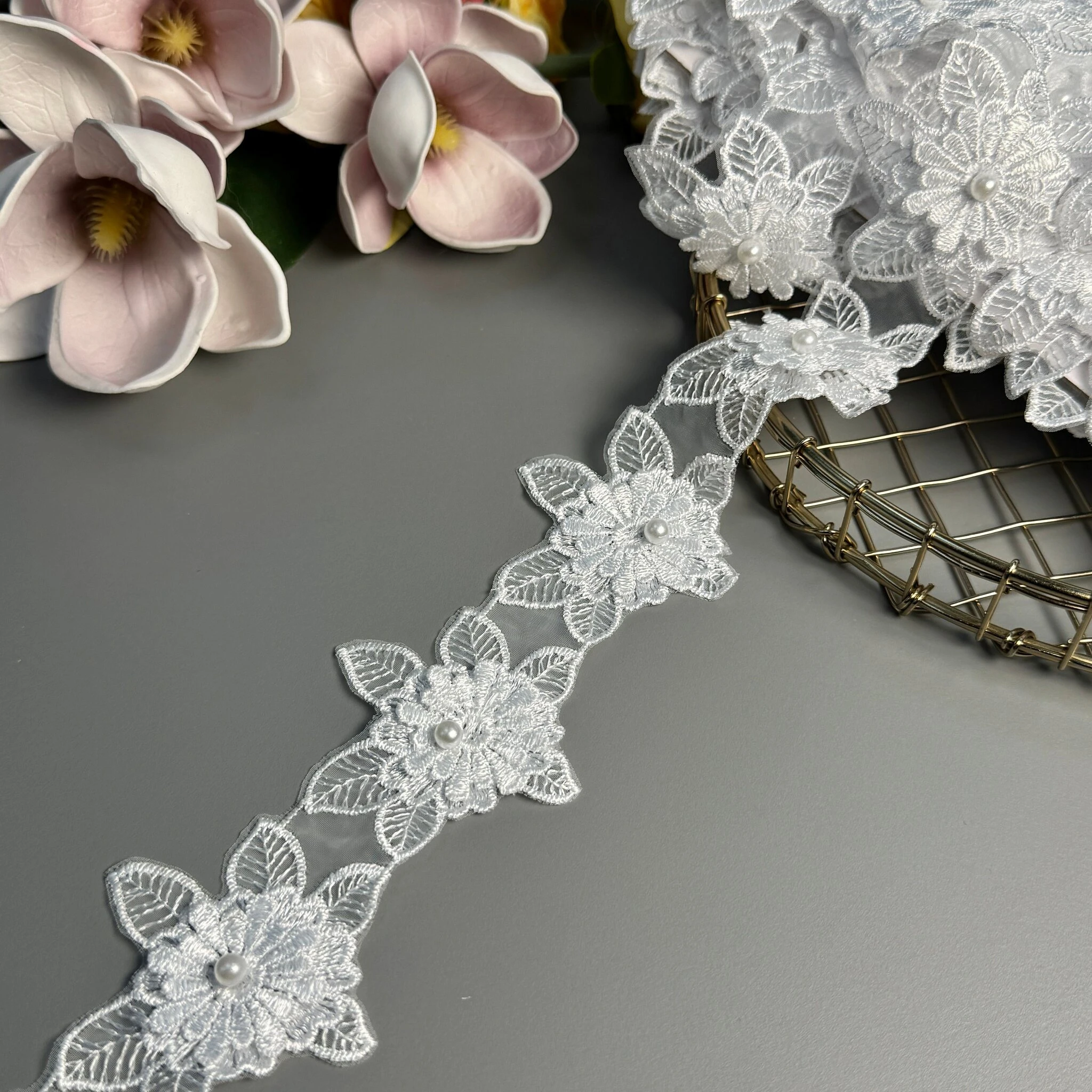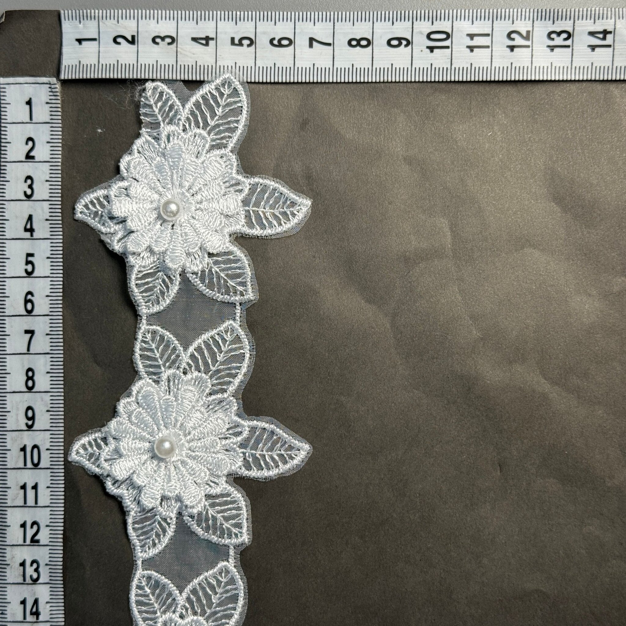 Мереживо поліестер 3D МD61 6,5 см.(10 ярдів/9.1 м.), білий
