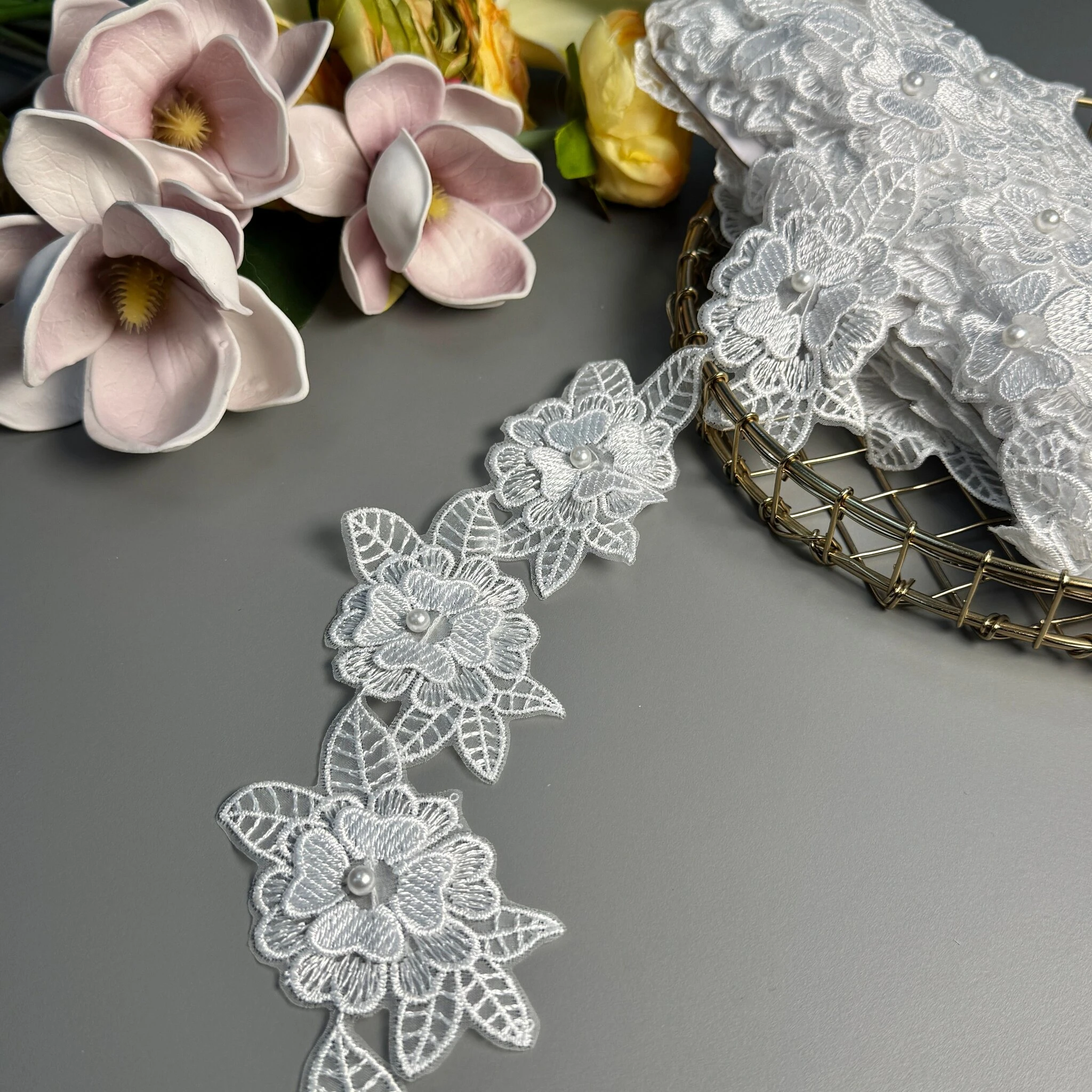 Мереживо поліестер 3D МD93 6 см.(10 ярдів/9.1 м.), білий