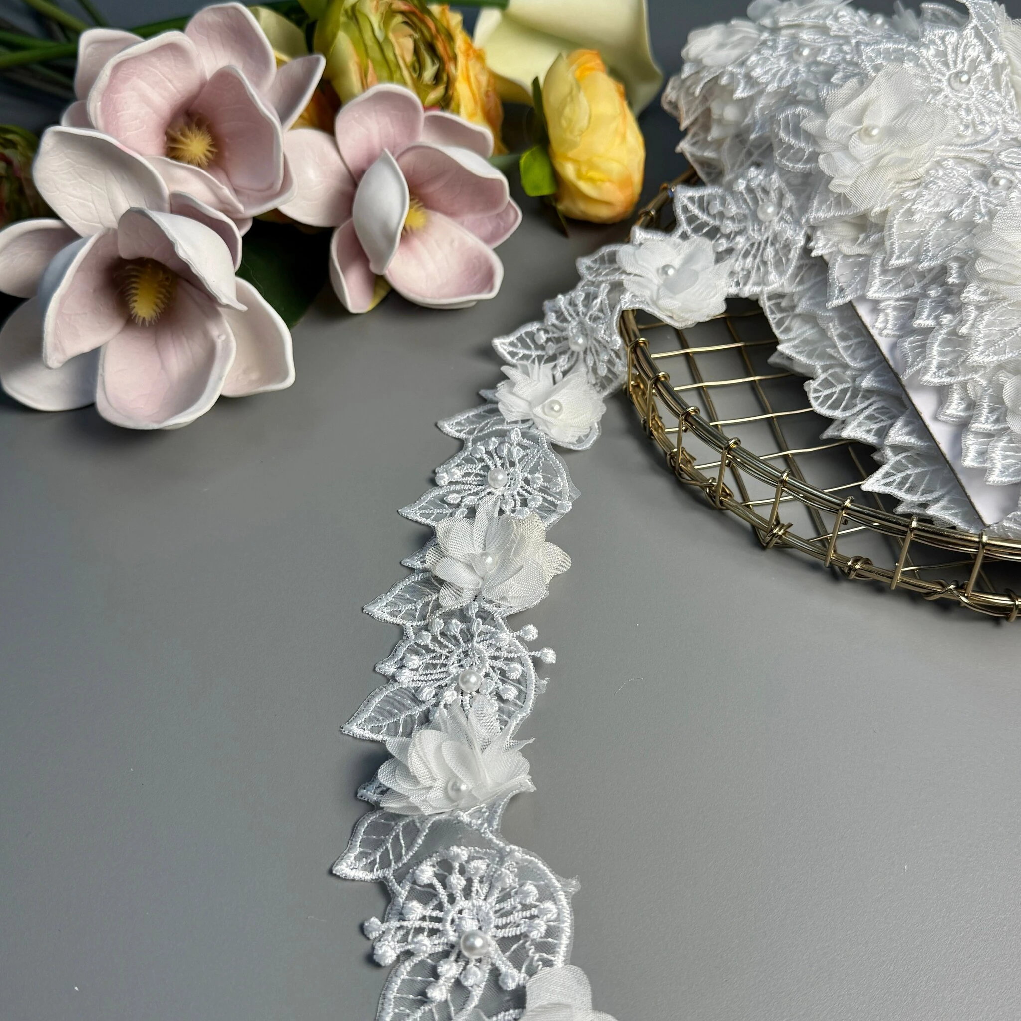 Це надзвичайно стильне та елегантне мереживо з об'ємним 3D ефектом, яке додає тканині вишуканості та глибини. Завдяки своїй тривимірній структурі, мереживо створює унікальний вигляд з ефектом легкості та руху.