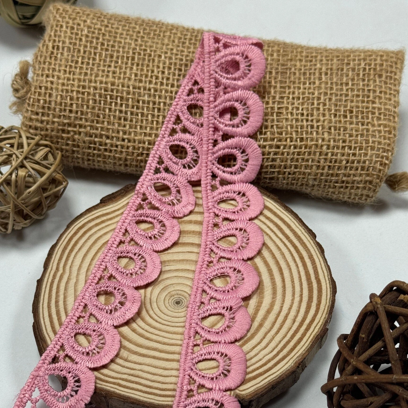 Мереживо поліестер 8860 2,5 см. (15 ярдів/13.5 м.), темно рожевий